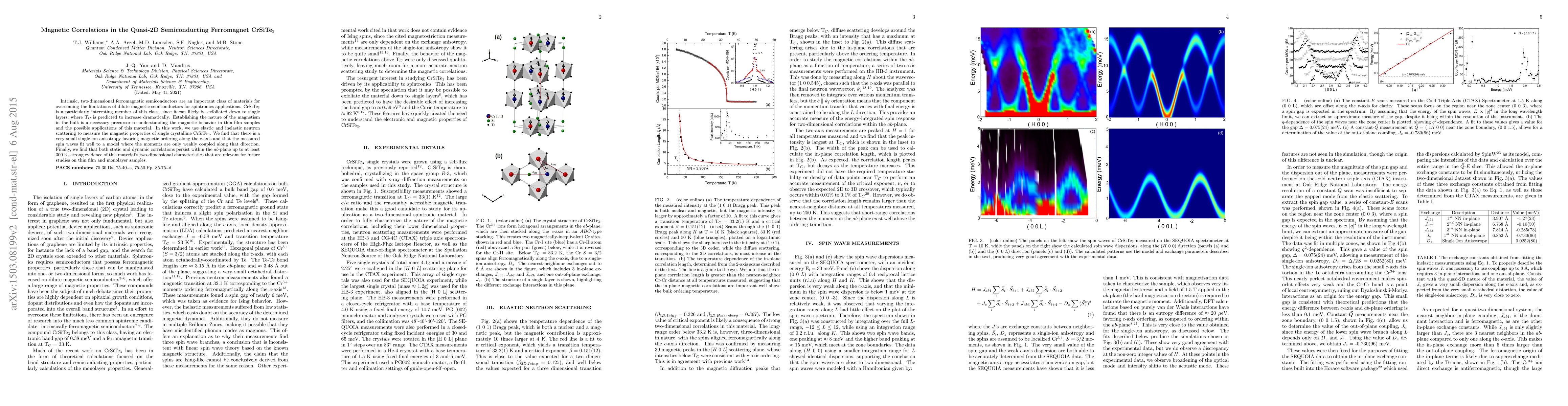 This study investigates the magnetic properties of the quasi-2D semiconducting ferromagnet CrSiTe$_3$ using neutron scattering. It reveals weak coupling along the $c$-axis and persistent two-dimensional magnetic correlations in the $ab$-plane up to 300 K, highlighting the material's potential for spintronics applications.