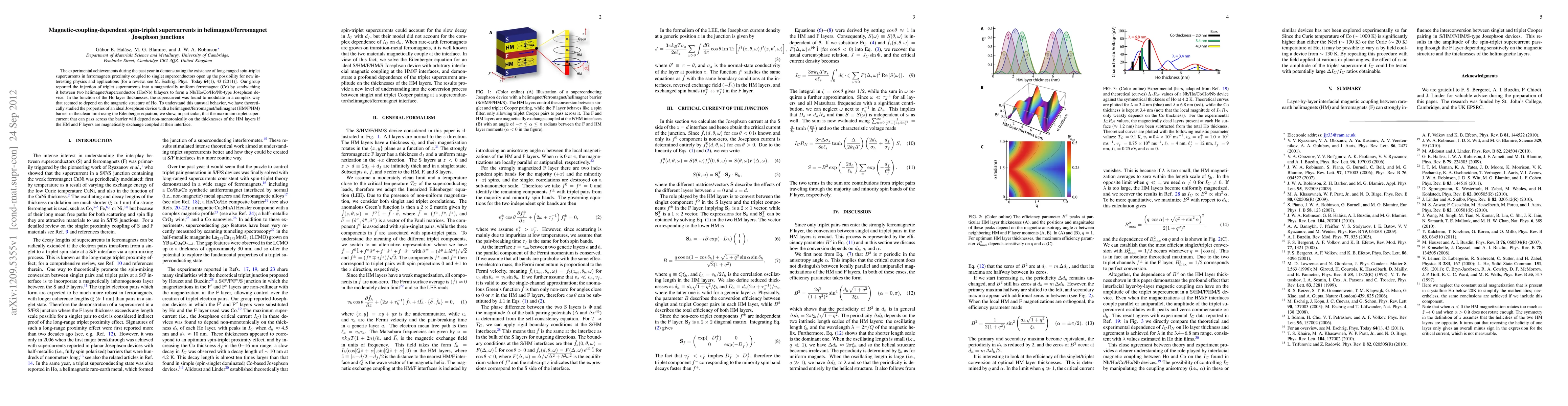 The experimental achievements during the past year in demonstrating the existence of long-ranged spin-triplet supercurrents in ferromagnets proximity coupled to singlet superconductors open up the possibility for new interesting physics and applications [for a review, see M. Eschrig, Phys. Today 64(1), 43 (2011)]. Our group reported the injection of triplet supercurrents into a magnetically uniform ferromagnet (Co) by sandwiching it between two helimagnet/superconductor (Ho/Nb) bilayers to form a Nb/Ho/Co/Ho/Nb-type Josephson device. In the function of the Ho layer thicknesses, the supercurrent was found to modulate in a complex way that seemed to depend on the magnetic structure of Ho. To understand this unusual behavior, we have theoretically studied the properties of an ideal Josephson device with a helimagnet/ferromagnet/helimagnet (HM/F/HM) barrier in the clean limit using the Eilenberger equation; we show, in particular, that the maximum triplet supercurrent that can pass across the barrier will depend non-monotonically on the thicknesses of the HM layers if the HM and F layers are magnetically exchange coupled at their interface.