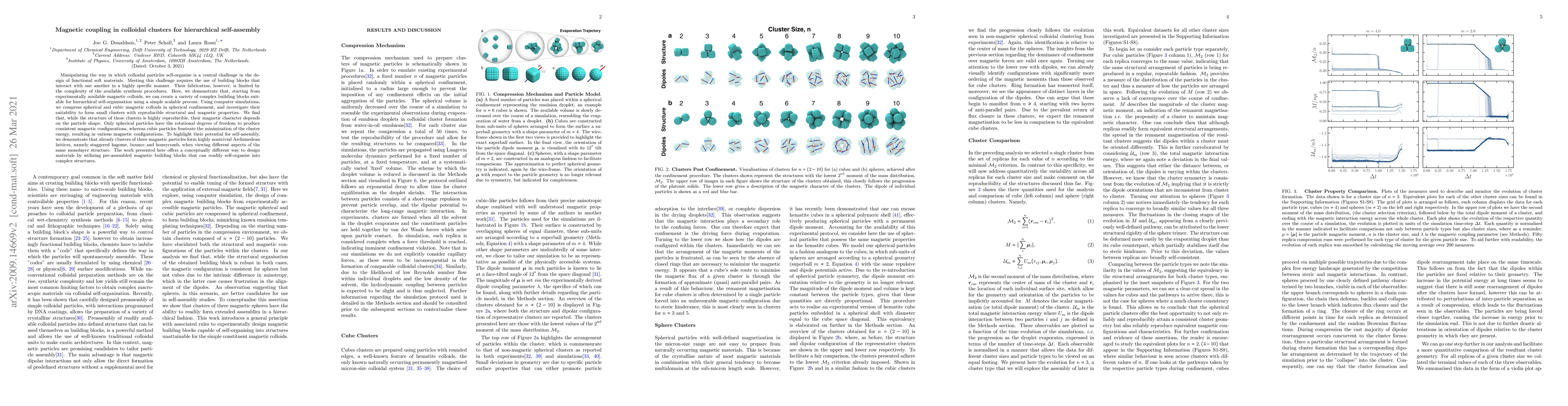 Manipulating the way in which colloidal particles self-organise is a central challenge in the design of functional soft materials. Meeting this challenge requires the use of building blocks that interact with one another in a highly specific manner. Their fabrication, however, is limited by the complexity of the available synthesis procedures. Here, we demonstrate that, starting from experimentally available magnetic colloids, we can create a variety of complex building blocks suitable for hierarchical self-organisation using a simple scalable process. Using computer simulations, we compress spherical and cubic magnetic colloids in spherical confinement, and investigate their suitability to form small clusters with reproducible structural and magnetic properties. We find that, while the structure of these clusters is highly reproducible, their magnetic character depends on the particle shape. Only spherical particles have the rotational degrees of freedom to produce consistent magnetic configurations, whereas cubic particles frustrate the minimisation of the cluster energy, resulting in various magnetic configurations. To highlight their potential for self-assembly, we demonstrate that already clusters of three magnetic particles form highly nontrivial Archimedean lattices, namely staggered kagome, bounce and honeycomb, when viewing different aspects of the same monolayer structure. The work presented here offers a conceptually different way to design materials by utilizing pre-assembled magnetic building blocks that can readily self-organise into complex structures.