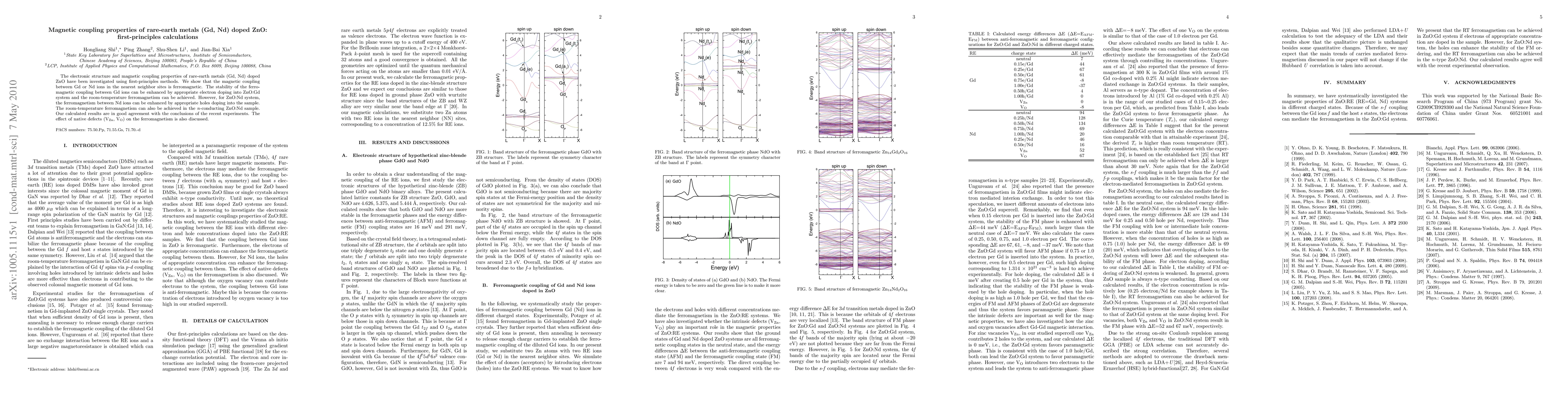 Researchers used first-principles calculations to study magnetic coupling properties of Gd and Nd doped ZnO, finding ferromagnetic behavior in some cases and room-temperature ferromagnetism achievable through electron or hole doping.