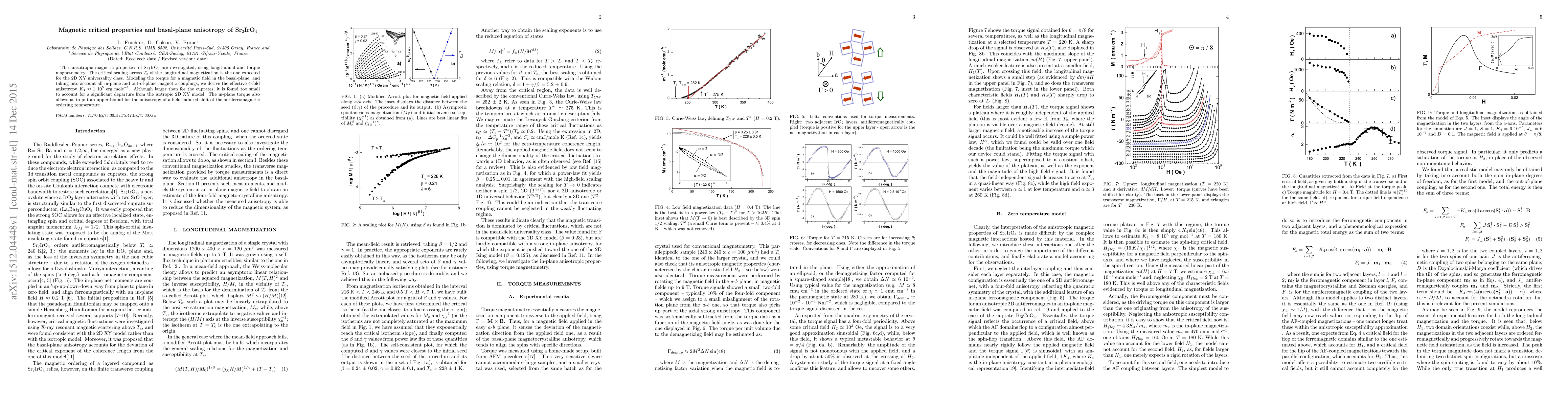 The study investigates the magnetic critical properties and basal-plane anisotropy of Sr$_2$IrO$_4$ using longitudinal and torque magnetometry. It models the torque for a magnetic field in the basal-plane, considering all in-plane and out-of-plane magnetic couplings.