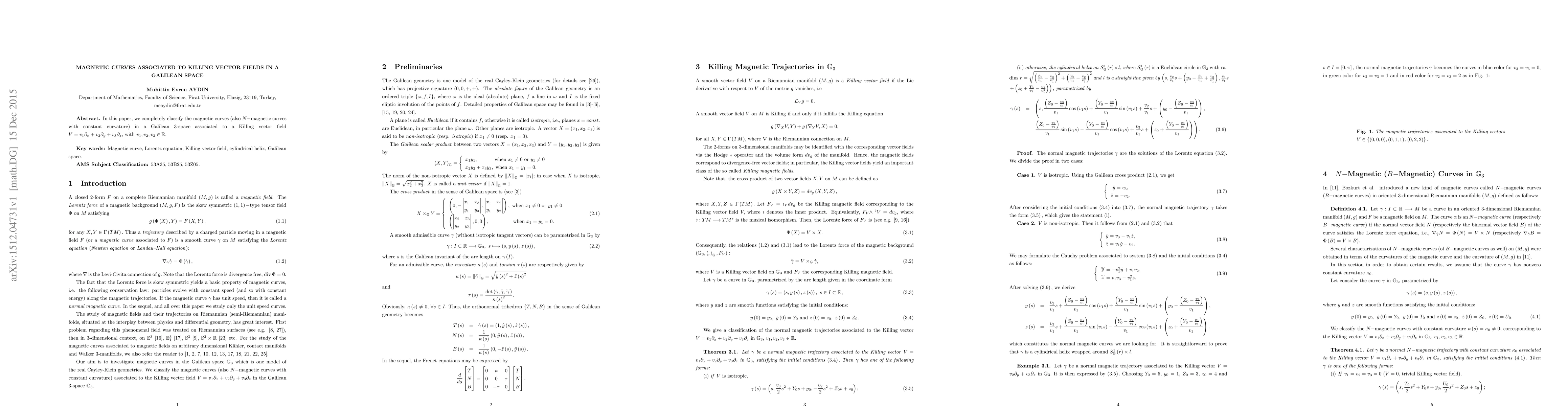 In this paper, we completely classify the magnetic curves (also N-magnetic curves with constant curvature) in a Galilean 3-space associated to a Killing vector field.