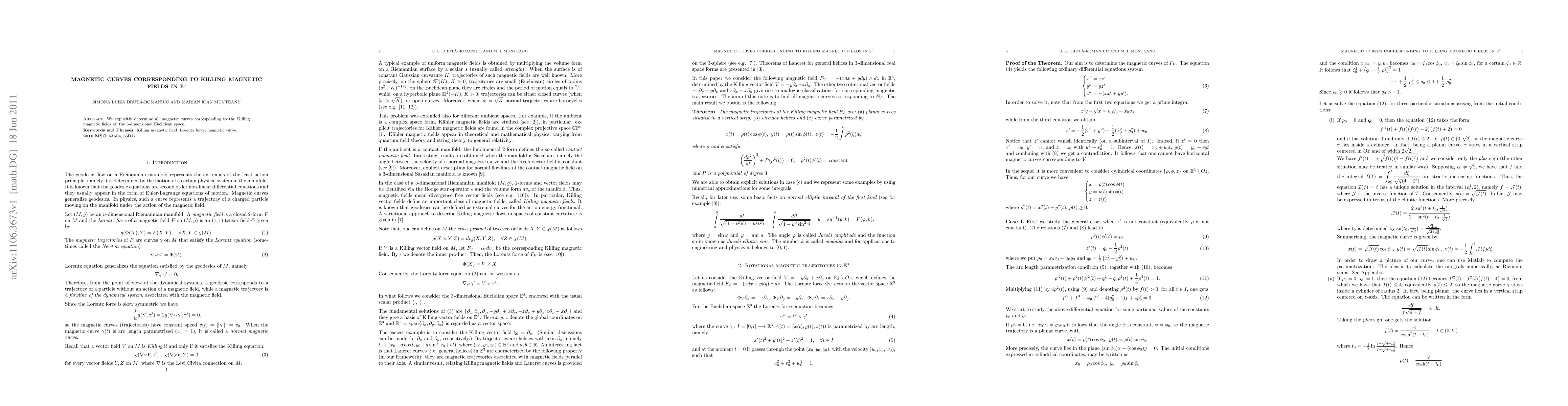 Summary: This paper identifies all magnetic curves in $E^3$ that correspond to Killing magnetic fields, providing a comprehensive analysis of their geometric properties. The findings contribute to the understanding of the dynamics of magnetic fields in three-dimensional Euclidean space.
