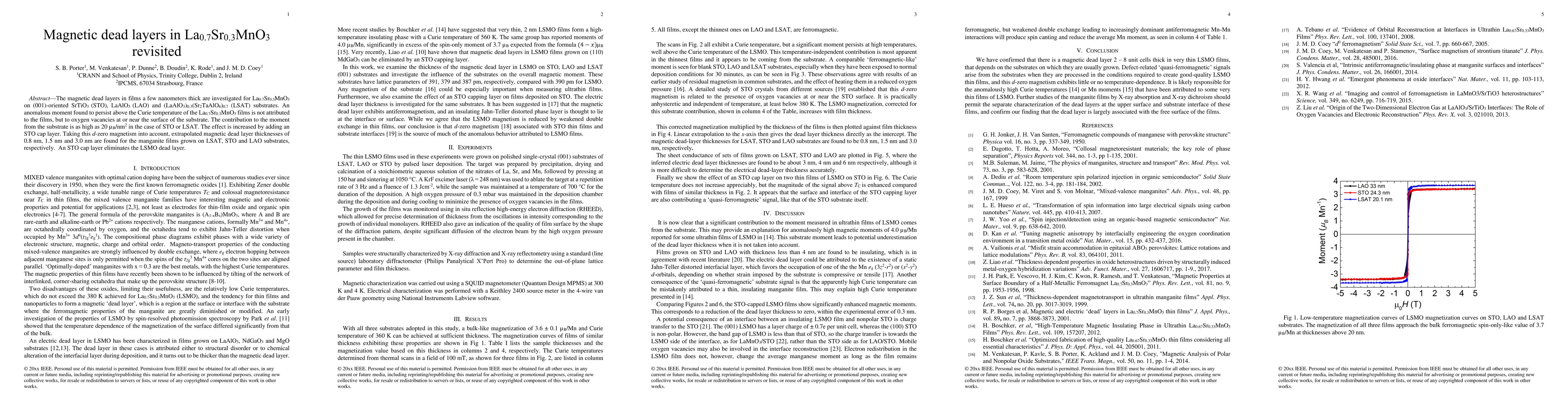 This study revisits magnetic dead layers in La$_{0.7}$Sr$_{0.3}$MnO$_3$ films grown on various substrates, revealing that persistent anomalous moments above the Curie temperature are due to oxygen vacancies in the substrate rather than the films themselves. Extrapolated dead layer thicknesses are 0.8 nm, 1.5 nm, and 3.0 nm for LSAT, STO, and LAO substrates, respectively, with an STO cap layer effectively eliminating the dead layer.