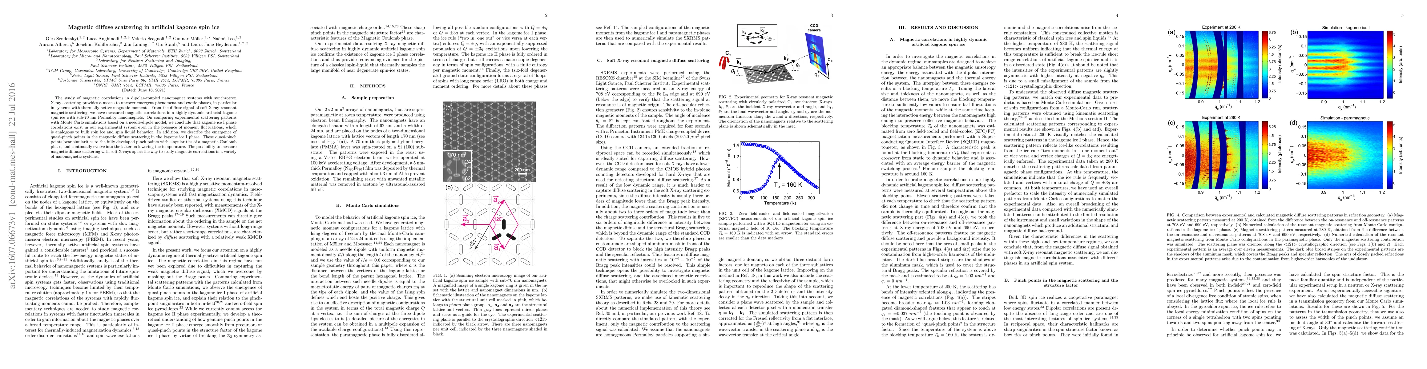 The study utilized synchrotron x-ray scattering on a highly dynamic artificial kagome spin ice system with sub-70-nm Permalloy nanomagnets. Monte Carlo simulations based on a needle-dipole model were employed to compare experimental scattering patterns.
