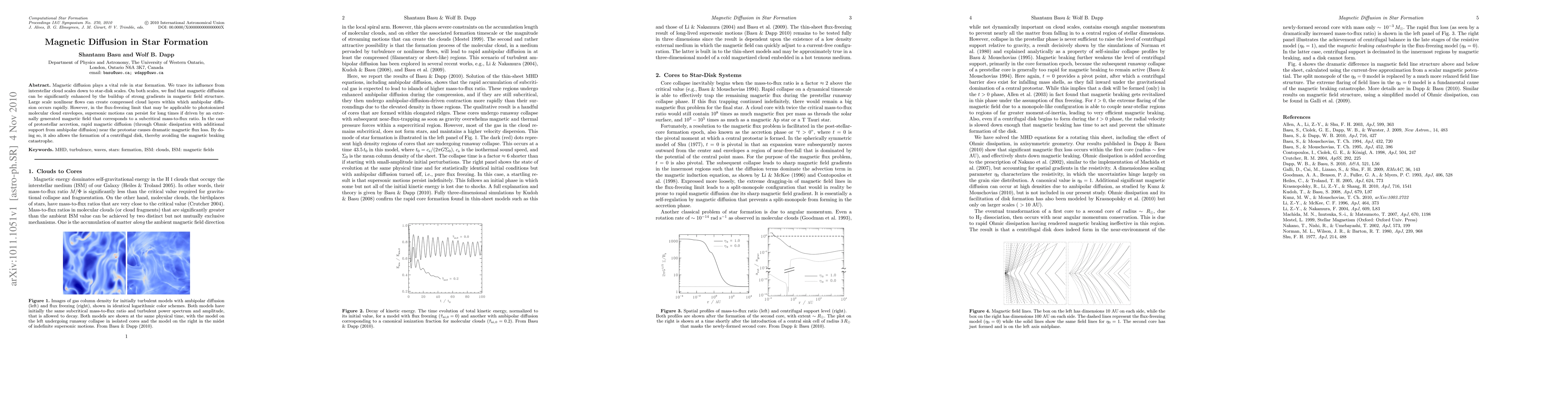 This paper investigates magnetic diffusion's role in star formation, showing that it is enhanced by strong magnetic field gradients, facilitating rapid ambipolar diffusion in compressed cloud layers. Near the protostar, rapid magnetic diffusion prevents magnetic braking and enables the formation of a centrifugal disk.