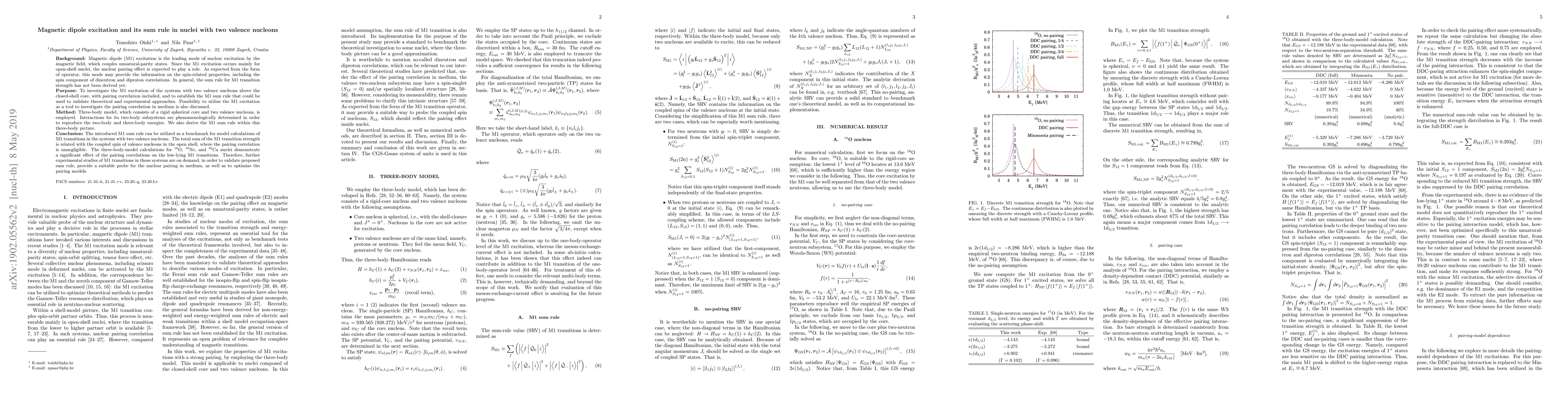 This paper investigates magnetic dipole (M1) excitation in nuclei with two valence nucleons, employing a three-body model to include pairing correlations. It establishes an M1 sum rule for these systems, demonstrating its utility as a benchmark for theoretical and experimental validations and highlighting the pairing correlation's significant impact on M1 transitions.