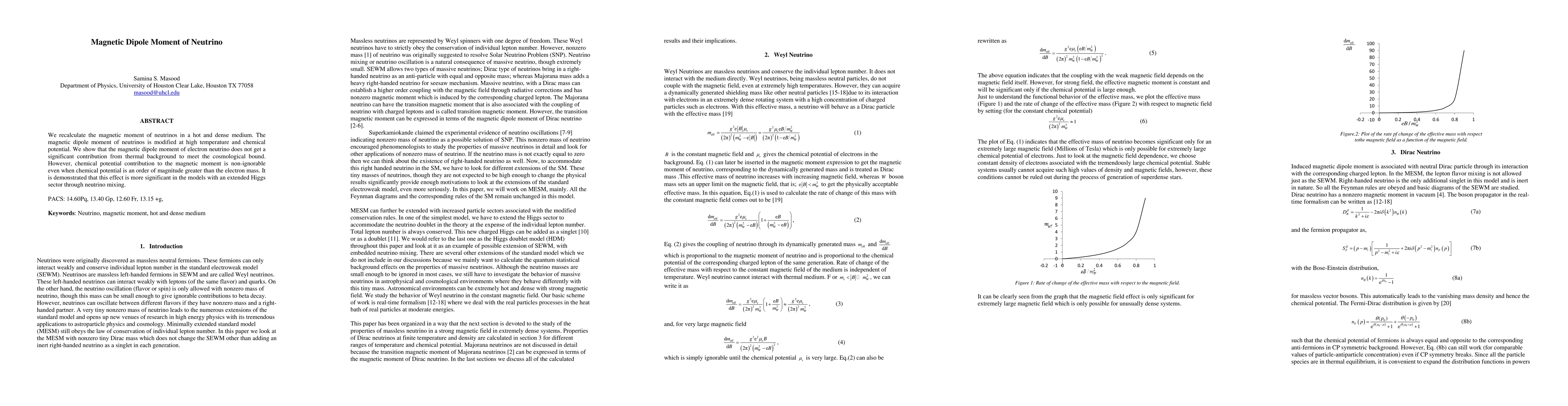This paper recalculates the magnetic dipole moment of neutrinos in hot and dense environments, finding that while thermal effects are minimal, chemical potential significantly influences the moment, especially in models with extended Higgs sectors due to neutrino mixing.
