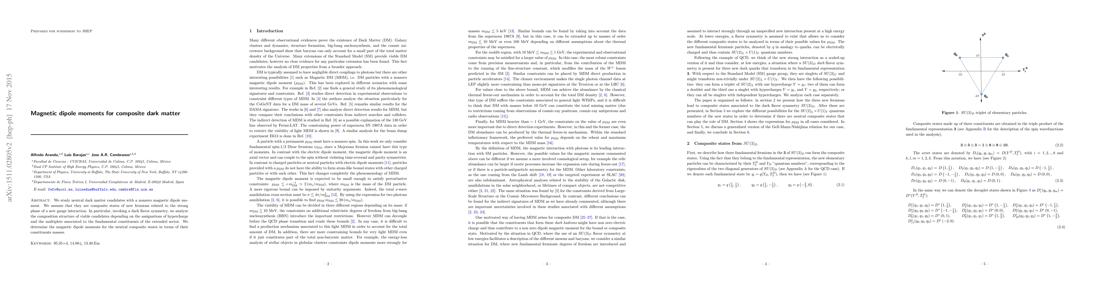 This paper investigates neutral dark matter candidates with magnetic dipole moments, proposing they are composite states formed by new fermions linked to a new gauge interaction. The study determines the magnetic dipole moments based on the masses of the constituent fermions, considering their hypercharge and multiplet assignments.