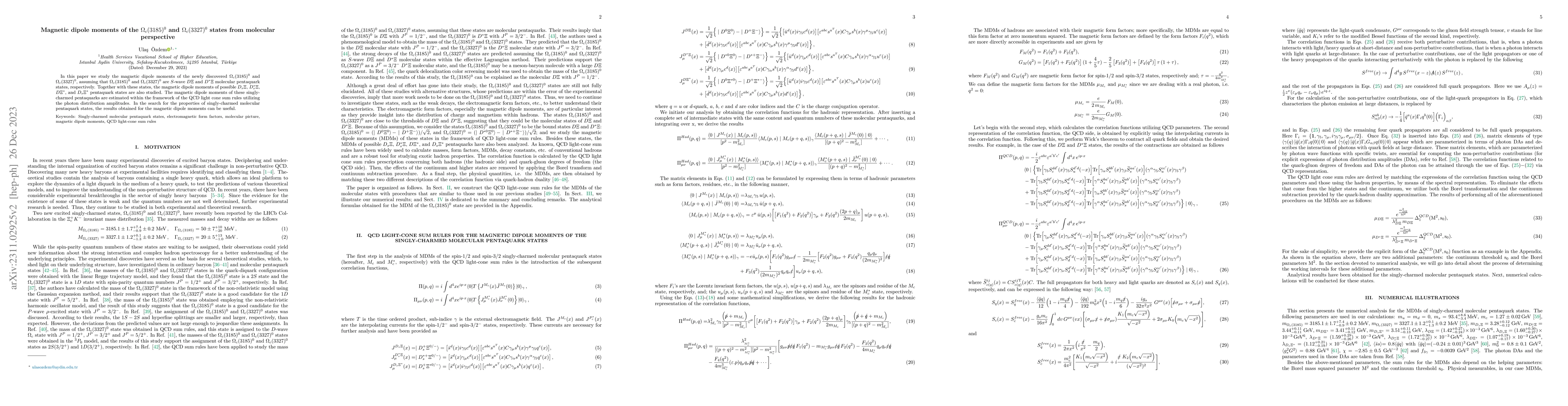 This paper estimates the magnetic dipole moments of the $\Omega_{c}(3185)^0$ and $\Omega_c(3327)^0$ pentaquark states, assuming they are molecular states composed of $D \Xi$ and $D^* \Xi$ respectively, using QCD light cone sum rules. The study also includes potential moments for other singly-charmed pentaquark states.