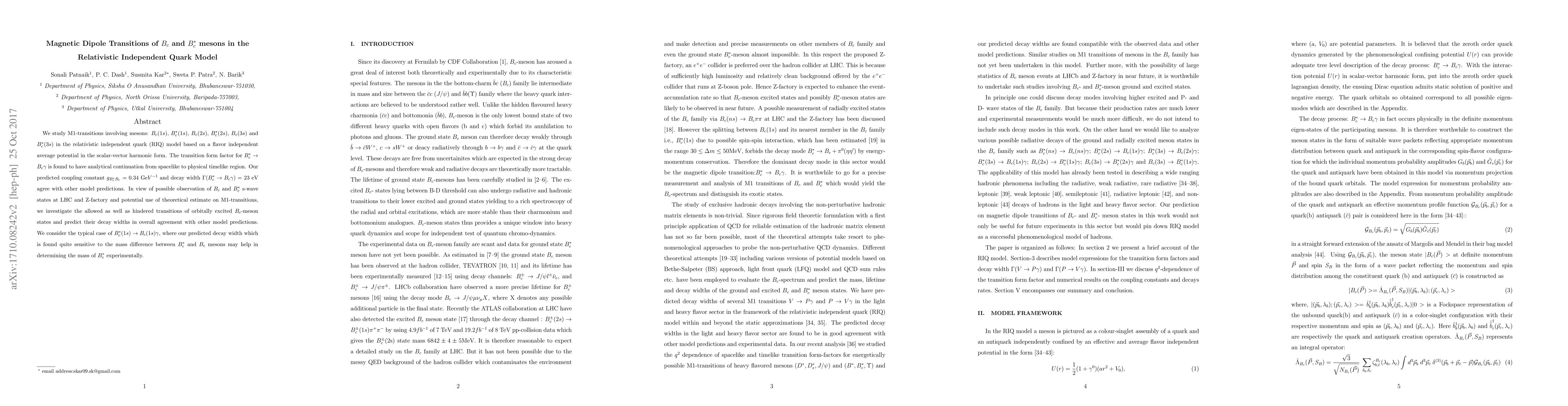 Researchers studied magnetic dipole transitions of $B_c$ and $B_c^*$ mesons using the relativistic independent quark model, predicting a coupling constant and decay width that agree with other models, and suggesting potential use in LHC experiments.