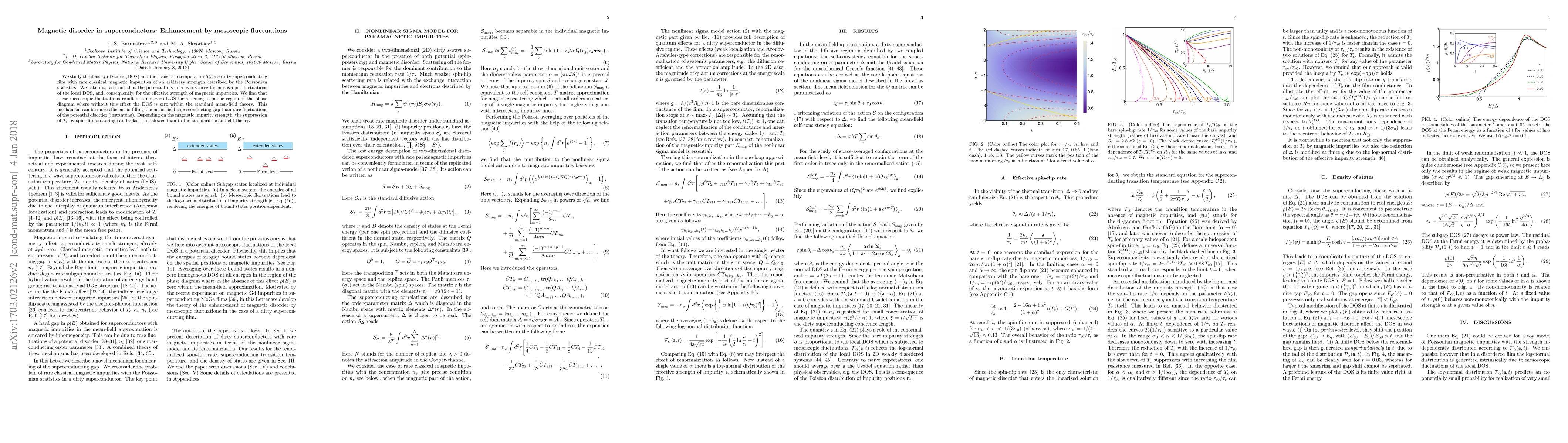This research investigates how mesoscopic fluctuations in a dirty superconducting film enhance magnetic disorder, affecting the density of states and transition temperature $T_c$. It finds that these fluctuations can fill the superconducting gap more effectively than rare disorder fluctuations, altering the suppression of $T_c$ by spin-flip scattering.