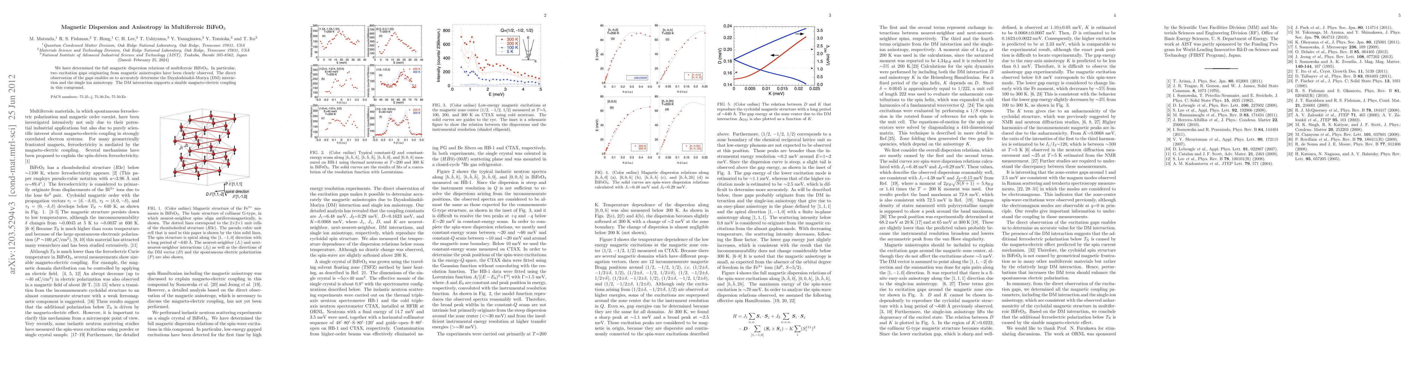 This study reveals the magnetic dispersion relations of multiferroic BiFeO3, identifying two excitation gaps due to magnetic anisotropies. The findings provide precise measurements of the Dzyaloshinskii-Moriya interaction and single ion anisotropy, supporting robust magneto-electric coupling.