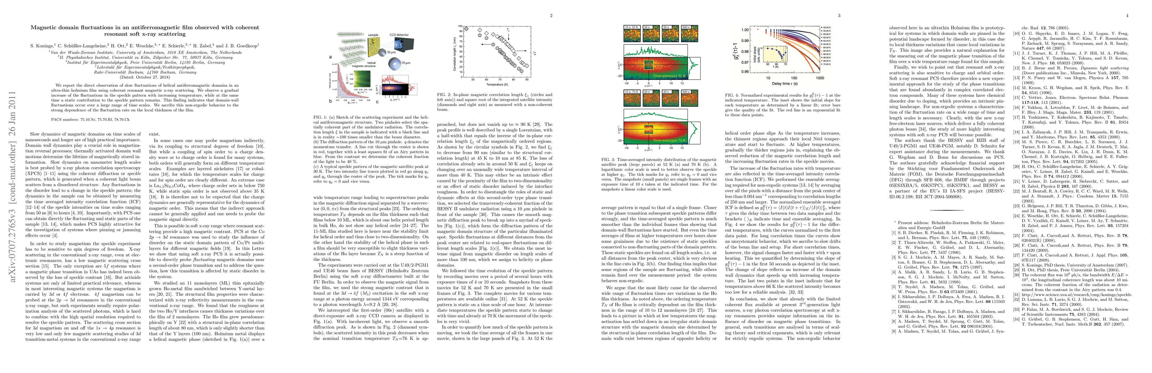 Researchers observed slow fluctuations of antiferromagnetic domains in a thin holmium film using X-ray scattering, noting a gradual increase with temperature that persists over a range of time scales.