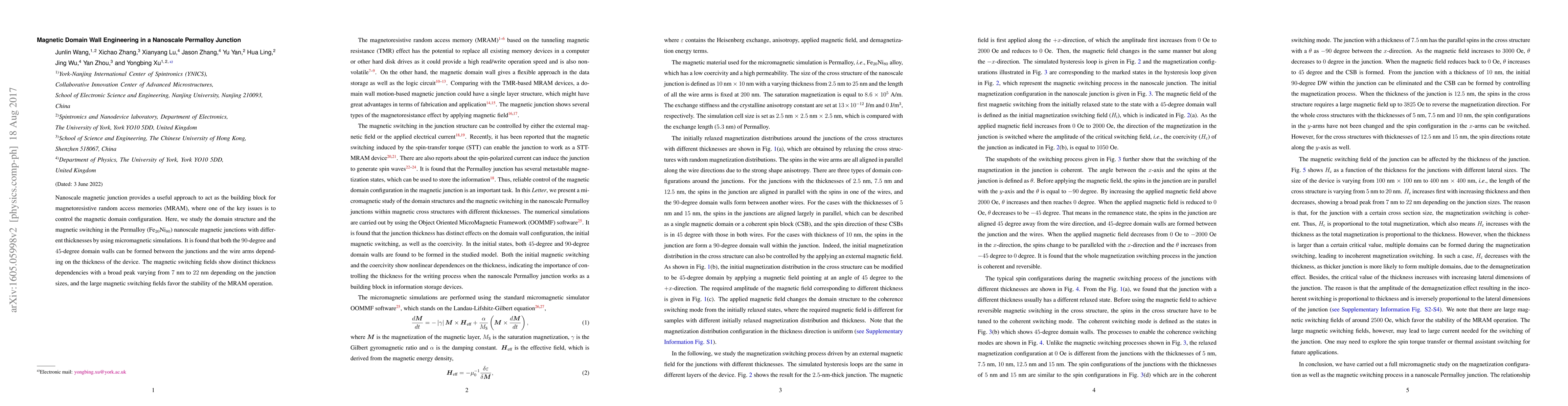 Researchers used micromagnetic simulations to study magnetic domain walls in nanoscale Permalloy junctions and found that varying the device thickness can control the formation of 90-degree and 45-degree wall configurations, which affects the stability of MRAM operation.
