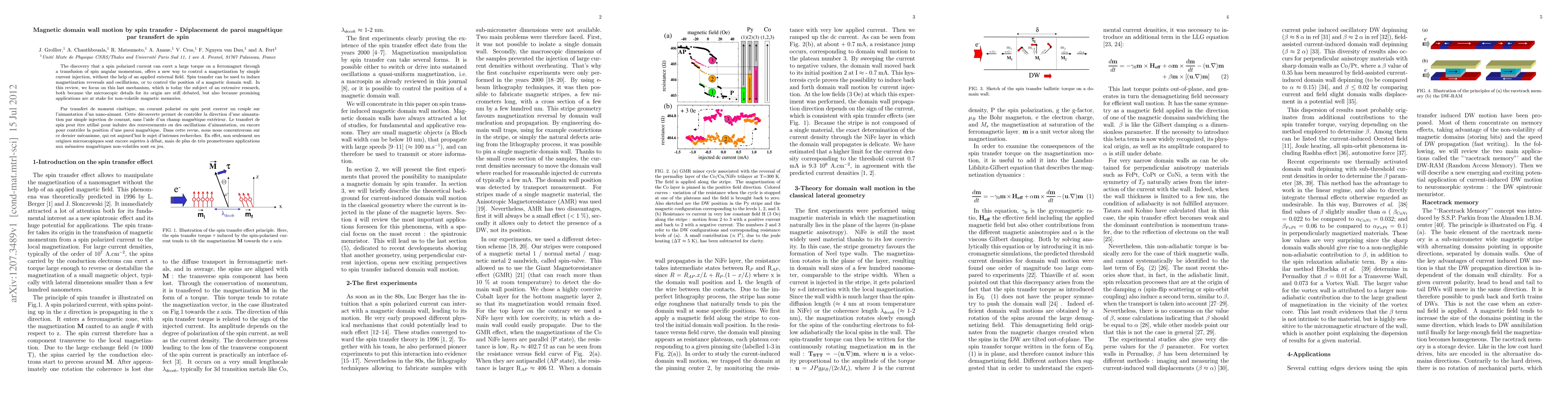 This review explores how spin transfer, a phenomenon where a current can exert torque on a ferromagnet, can control magnetic domain walls, with potential applications in non-volatile magnetic memories.