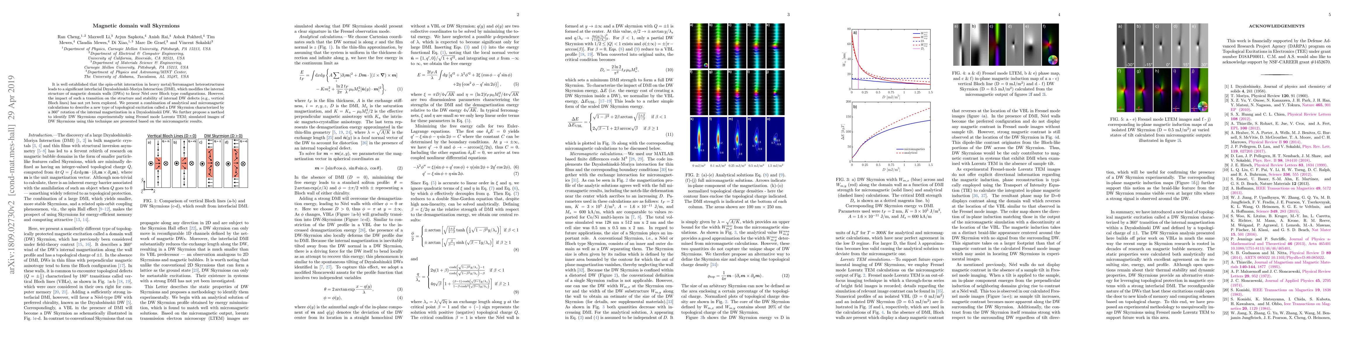 This research introduces a novel topological excitation in magnetic domain walls called DW Skyrmions, characterized by a $360^\circ$ magnetization rotation in Dzyaloshinskii-Moriya Interaction-driven walls. The study combines analytical and micromagnetic calculations to propose an experimental method for their identification using Fresnel mode Lorentz TEM.