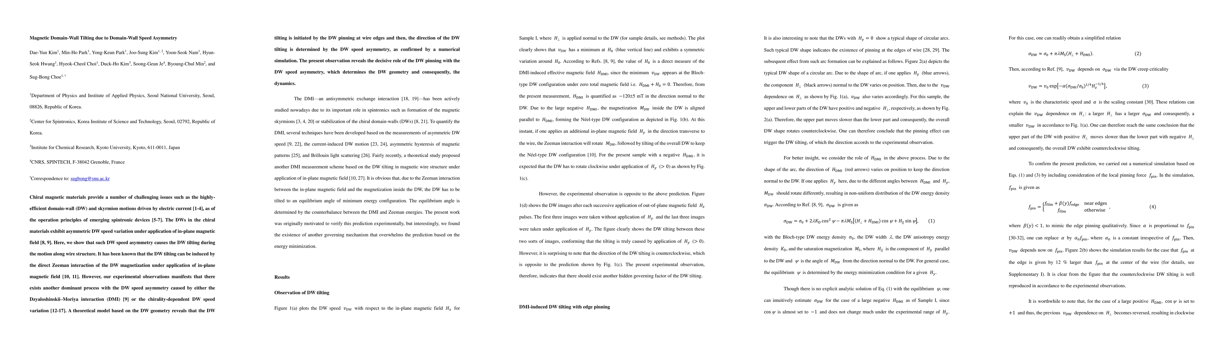 This paper demonstrates that asymmetric domain wall (DW) speeds in chiral magnetic materials induce DW tilting during motion, driven by either Dzyaloshinskii Moriya interaction or chirality-dependent speed variation. Theoretical and numerical models reveal that DW tilting is initiated by DW pinning at wire edges, with the direction determined by DW speed asymmetry.