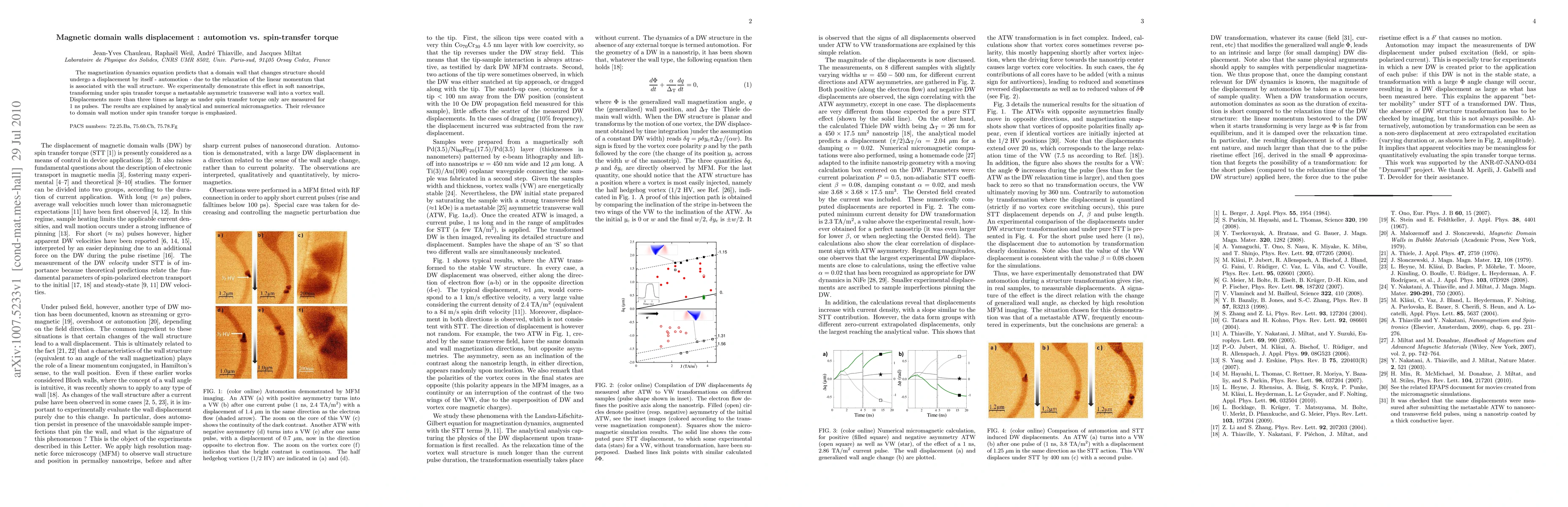 This paper experimentally demonstrates the automotion of magnetic domain walls in soft nanostrips, showing that they can displace more than three times as much as under spin-transfer torque alone. The findings are supported by analytical and numerical micromagnetics, highlighting the significance of automotion in domain wall dynamics.