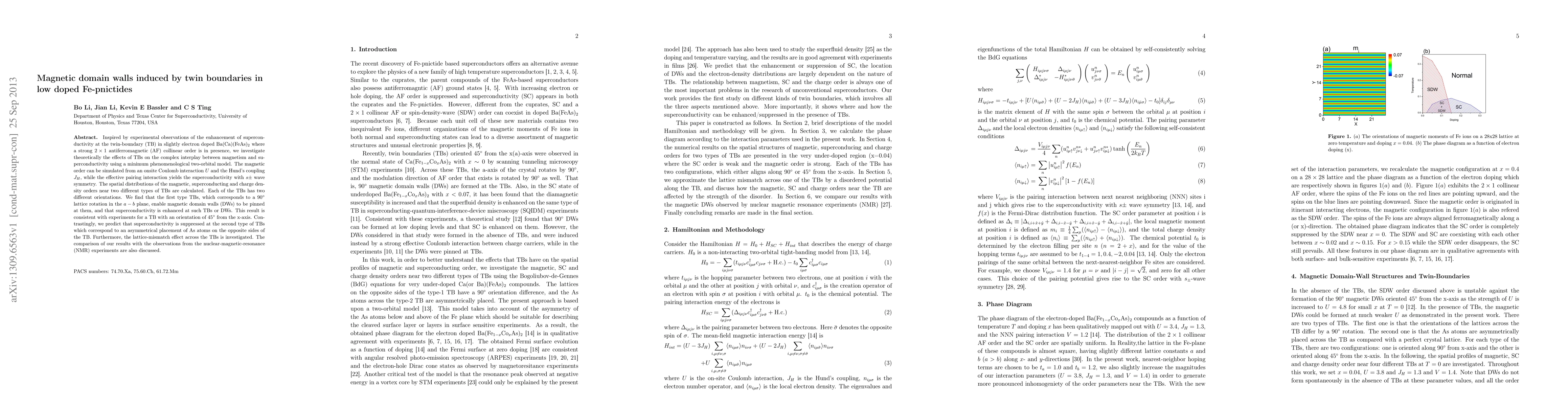 Inspired by experimental observations of the enhancement of superconductivity at the twin-boundary (TB) in slightly electron doped Ba(Ca)(FeAs)$_2$ where a strong $2\times1$ antiferromagnetic (AF) collinear order is in presence, we investigate theoretically the effects of TBs on the complex interplay between magnetism and superconductivity using a minimum phenomenological two-orbital model. The magnetic order can be simulated from an onsite Coulomb interaction $U$ and the Hund's coupling $J_H$, while the effective pairing interaction yields the superconductivity with $s\pm$ wave symmetry. The spatial distributions of the magnetic, superconducting and charge density orders near two different types of TBs are calculated. Each of the TBs has two different orientations. We find that the first type TBs, which corresponds to a $90^\circ$ lattice rotation in the $a-b$ plane, enable magnetic domain walls (DWs) to be pinned at them, and that superconductivity is enhanced at such TBs or DWs. This result is consistent with experiments for a TB with an orientation of $45^\circ$ from the x-axis. Contrastingly, we predict that superconductivity is suppressed at the second type of TBs which correspond to an asymmetrical placement of As atoms on the opposite sides of the TB. Furthermore, the lattice-mismatch effect across the TBs is investigated. The comparison of our results with the observations from the nuclear-magnetic-resonance (NMR) experiments are also discussed.