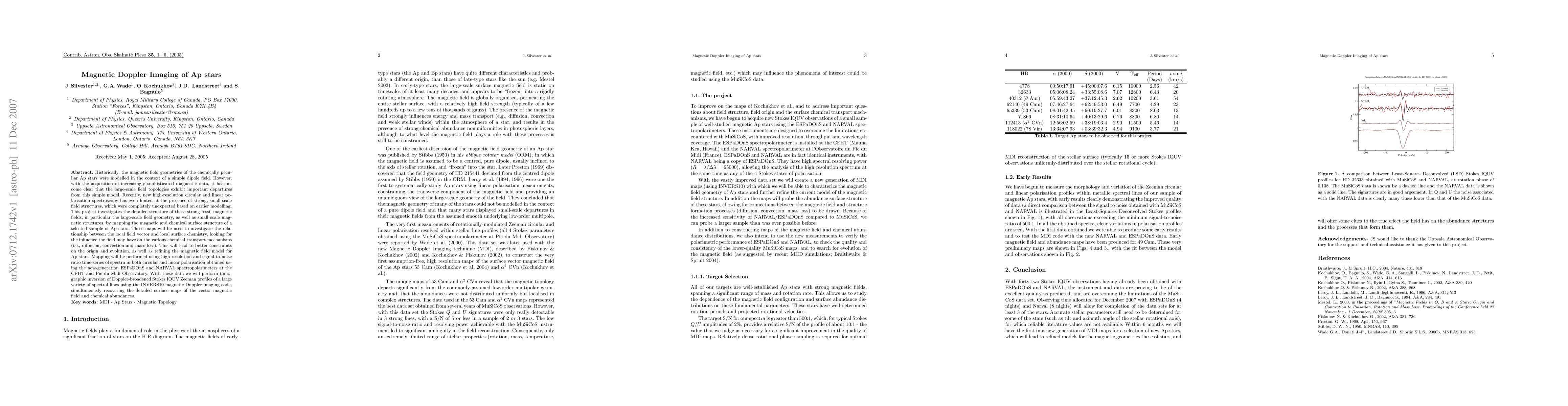 Historically, the magnetic field geometries of the chemically peculiar Ap stars were modelled in the context of a simple dipole field. However, with the acquisition of increasingly sophisticated diagnostic data, it has become clear that the large-scale field topologies exhibit important departures from this simple model. Recently, new high-resolution circular and linear polarisation spectroscopy has even hinted at the presence of strong, small-scale field structures, which were completely unexpected based on earlier modelling. This project investigates the detailed structure of these strong fossil magnetic fields, in particular the large-scale field geometry, as well as small scale magnetic structures, by mapping the magnetic and chemical surface structure of a selected sample of Ap stars. These maps will be used to investigate the relationship between the local field vector and local surface chemistry, looking for the influence the field may have on the various chemical transport mechanisms (i.e., diffusion, convection and mass loss). This will lead to better constraints on the origin and evolution, as well as refining the magnetic field model for Ap stars. Mapping will be performed using high resolution and signal-to-noise ratio time-series of spectra in both circular and linear polarisation obtained using the new-generation ESPaDOnS and NARVAL spectropolarimeters at the CFHT and Pic du Midi Observatory. With these data we will perform tomographic inversion of Doppler-broadened Stokes IQUV Zeeman profiles of a large variety of spectral lines using the INVERS10 magnetic Doppler imaging code, simultaneously recovering the detailed surface maps of the vector magnetic field and chemical abundances.