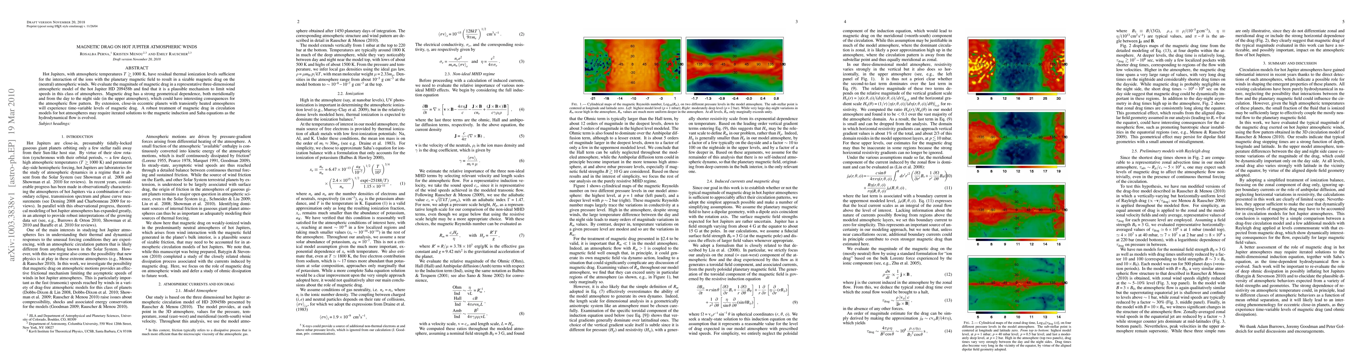 This paper evaluates magnetic drag's impact on the atmospheric winds of hot Jupiters, finding it a significant mechanism to limit wind speeds in HD 209458b's atmosphere. The study highlights the strong geometrical dependence of magnetic drag, which could influence atmospheric flow patterns and necessitates iterative solutions in circulation models.