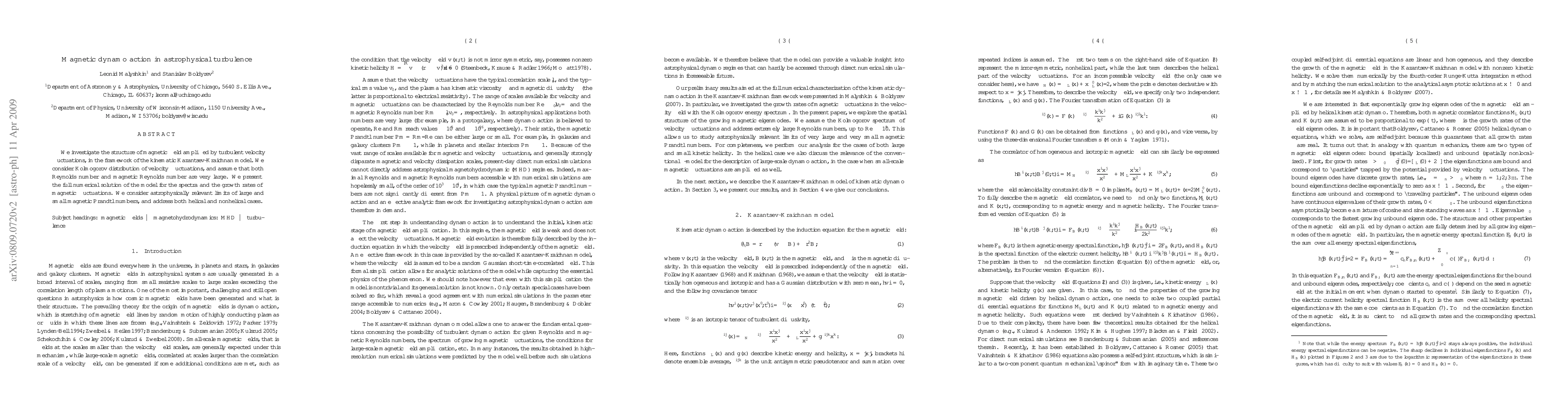 We investigate the structure of magnetic field amplified by turbulent velocity fluctuations, in the framework of the kinematic Kazantsev-Kraichnan model. We consider Kolmogorov distribution of velocity fluctuations, and assume that both Reynolds number and magnetic Reynolds number are very large. We present the full numerical solution of the model for the spectra and the growth rates of magnetic fluctuations. We consider astrophysically relevant limits of large and small magnetic Prandtl numbers, and address both helical and nonhelical cases.