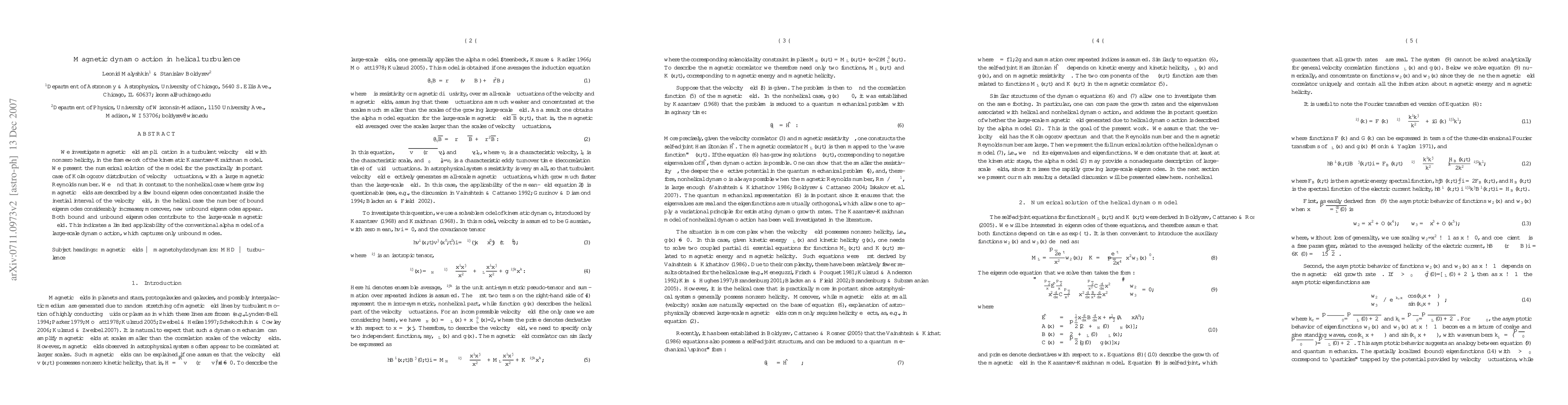 This study explores magnetic field amplification in helical turbulence using the kinematic Kazantsev-Kraichnan model, revealing that helical turbulence generates more bound eigenmodes and new unbound modes compared to nonhelical turbulence, challenging the conventional alpha model's applicability for large-scale dynamo action.