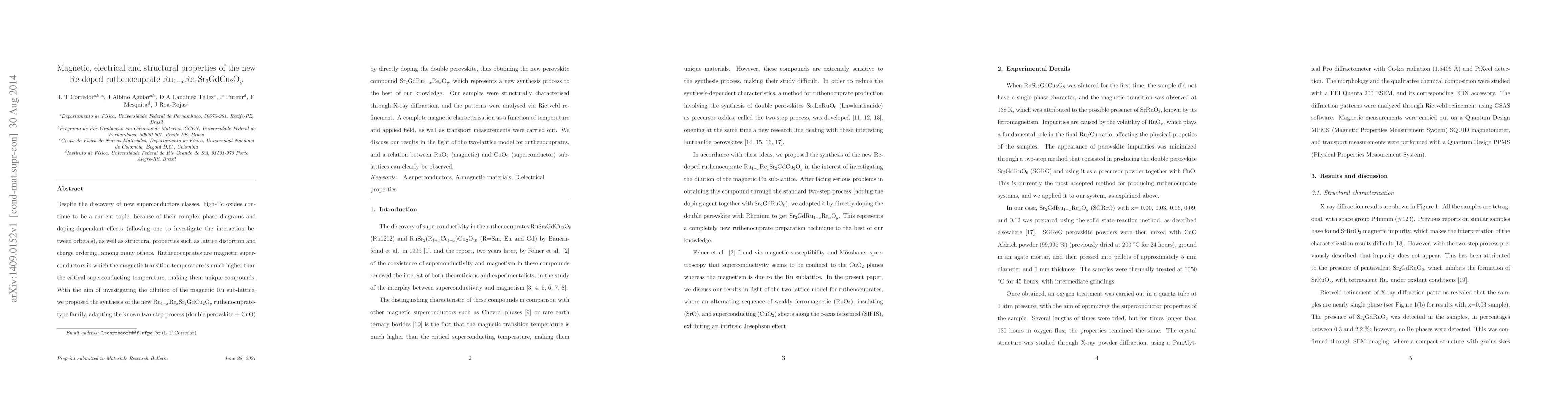 Despite the discovery of new superconductors classes, high-Tc oxides continue to be a current topic, because of their complex phase diagrams and doping-dependant effects (allowing one to investigate the interaction between orbitals), as well as structural properties such as lattice distortion and charge ordering, among many others. Ruthenocuprates are magnetic superconductors in which the magnetic transition temperature is much higher than the critical superconducting temperature, making them unique compounds. With the aim of investigating the dilution of the magnetic Ru sub-lattice, we proposed the synthesis of the new Ru1-xRexSr2GdCu2Oy ruthenocupratetype family, adapting the known two-step process (double perovskite + CuO)by directly doping the double perovskite, thus obtaining the new perovskite compound Sr2GdRu1-xRexOy, which represents a new synthesis process to the best of our knowledge. Our samples were structurally characterised through X-ray diffraction, and the patterns were analysed via Rietveld refinement. A complete magnetic characterisation as a function of temperature and applied field, as well as transport measurements were carried out. We discuss our results in the light of the two-lattice model for ruthenocuprates, and a relation between RuO2 (magnetic) and CuO2 (superconductor) sublattices can clearly be observed.