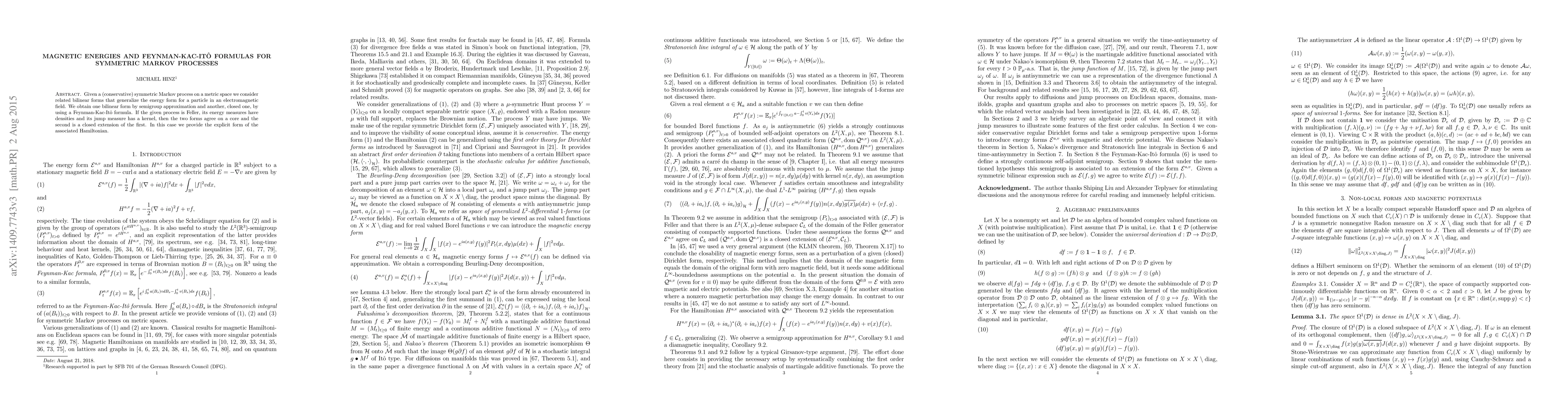 This paper explores bilinear forms related to symmetric Markov processes that generalize energy forms in an electromagnetic field. It derives these forms via semigroup approximation and a Feynman-Kac-Itô formula, showing they coincide under certain conditions, and provides an explicit Hamiltonian for Feller processes.