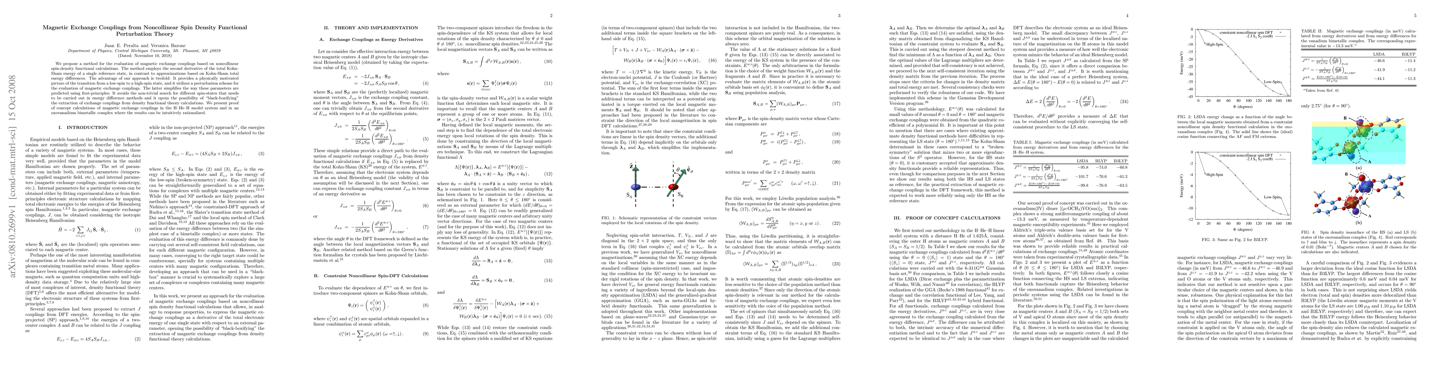 We propose a method for the evaluation of magnetic exchange couplings based on noncollinear spin-density functional calculations. The method employs the second derivative of the total Kohn-Sham energy of a single reference state, in contrast to approximations based on Kohn-Sham total energy differences. The advantage of our approach is twofold: It provides a physically motivated picture of the transition from a low-spin to a high-spin state, and it utilizes a perturbation scheme for the evaluation of magnetic exchange couplings. The latter simplifies the way these parameters are predicted using first-principles: It avoids the non-trivial search for different spin-states that needs to be carried out in energy difference methods and it opens the possibility of "black-boxifying" the extraction of exchange couplings from density functional theory calculations. We present proof of concept calculations of magnetic exchange couplings in the H--He--H model system and in an oxovanadium bimetallic complex where the results can be intuitively rationalized.