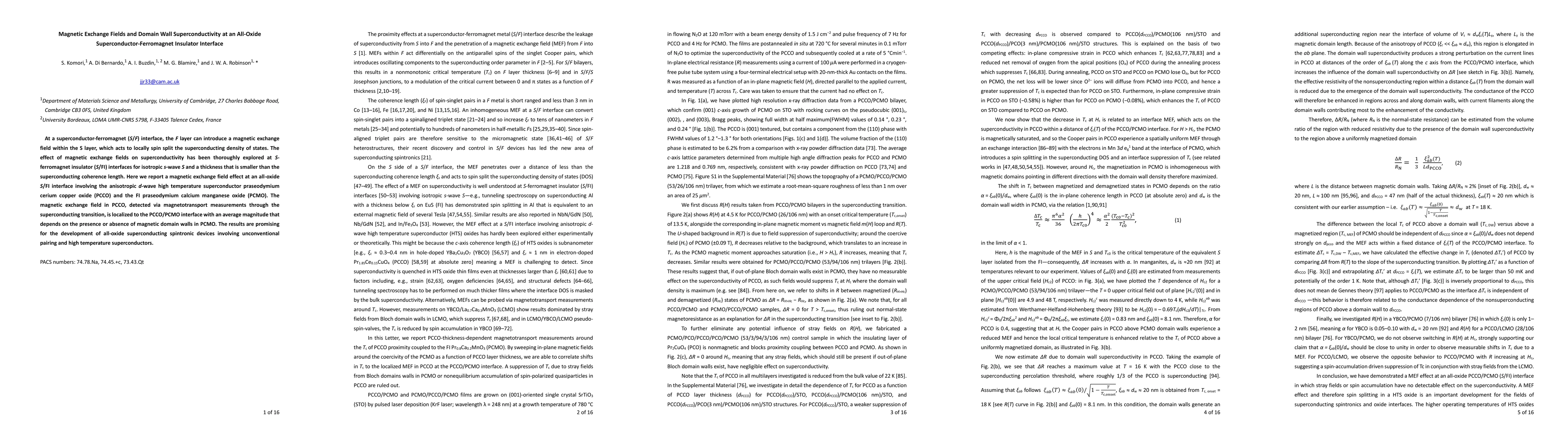 This paper investigates magnetic exchange fields at an all-oxide superconductor/ferromagnet insulator interface, finding that the exchange field in the d-wave superconductor praseodymium cerium copper oxide is influenced by the presence of magnetic domain walls in the ferromagnet praseodymium calcium manganese oxide. These findings suggest potential advancements in high-temperature superconducting spintronic devices.