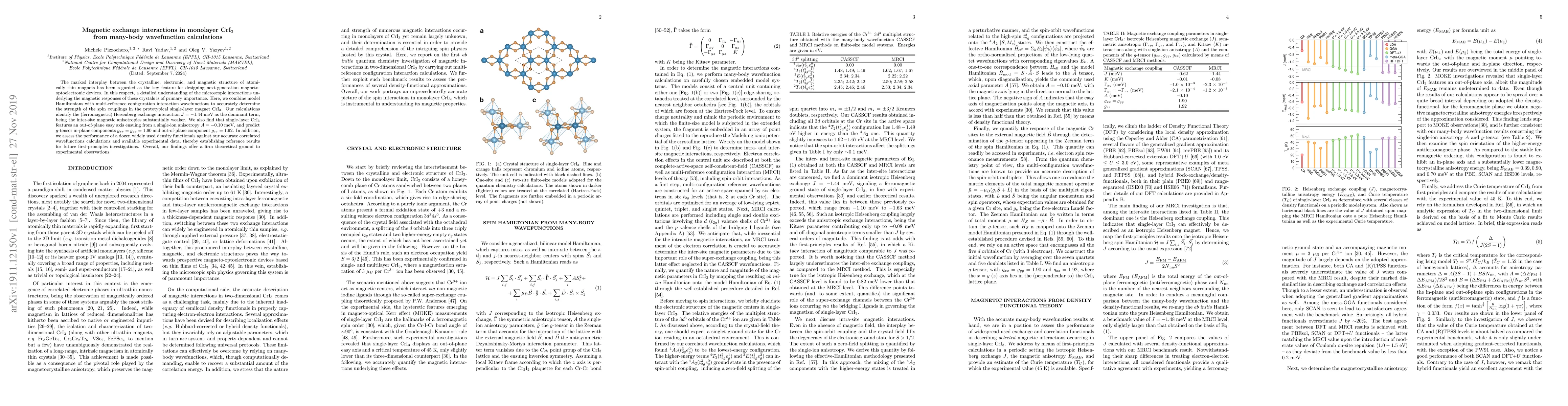 The marked interplay between the crystalline, electronic, and magnetic structure of atomically thin magnets has been regarded as the key feature for designing next-generation magneto-optoelectronic devices. In this respect, a detailed understanding of the microscopic interactions underlying the magnetic responses of these crystals is of primary importance. Here, we combine model Hamiltonians with multi-reference configuration interaction wavefunctions to accurately determine the strength of the spin couplings in the prototypical single-layer magnet CrI$_3$. Our calculations identify the (ferromagnetic) Heisenberg exchange interaction $J = -1.44$ meV as the dominant term, being the inter-site magnetic anisotropies substantially {weaker}. We also find that single-layer CrI$_3$ features an out-of-plane easy axis ensuing from a single-ion anisotropy $A = -0.10$ meV, and predict $g$-tensor in-plane components $g_{xx} = g_{yy} = 1.90$ and out-of-plane component $g_{zz} = 1.92$. In addition, we assess the performance of a dozen widely used density functionals against our accurate correlated wavefunctions {calculations} and available experimental data, thereby establishing reference results for future first-principles investigations. Overall, our findings offer a firm theoretical ground to experimental observations.