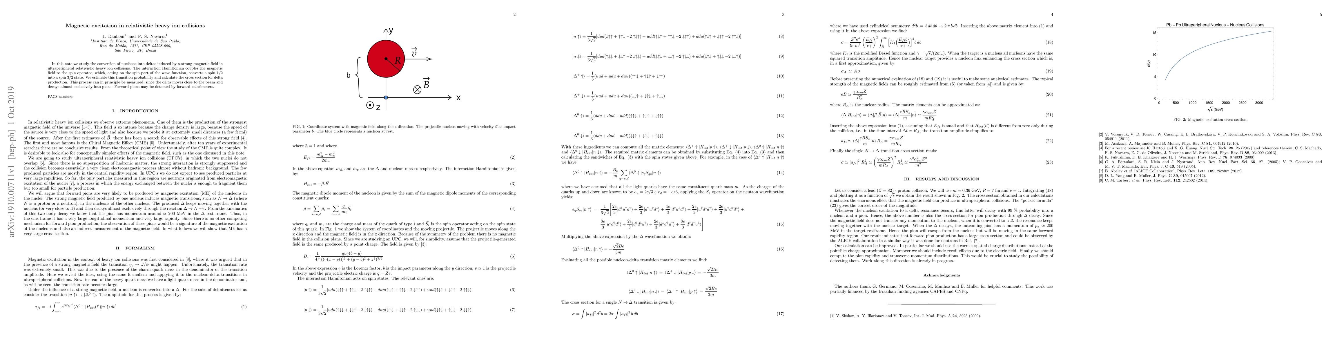 In this note we study the conversion of nucleons into deltas induced by a strong magnetic field in ultraperipheral relativistic heavy ion collisions. The interaction Hamiltonian couples the magnetic field to the spin operator, which, acting on the spin part of the wave function, converts a spin 1/2 into a spin 3/2 state. We estimate this transition probability and calculate the cross section for delta production. This process can in principle be measured, since the delta moves close to the beam and decays almost exclusively into pions. Forward pions may be detected by forward calorimeters.