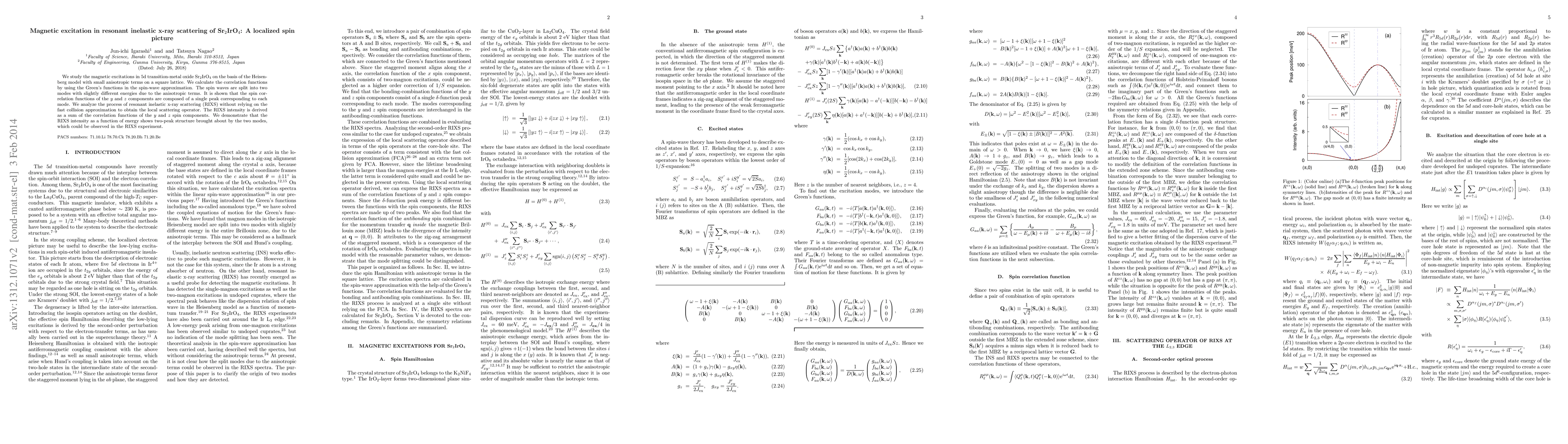 Researchers studied magnetic excitations in Sr2IrO4 using resonant inelastic x-ray scattering and found two distinct modes with different energies, resulting in a two-peak structure in the RIXS intensity.