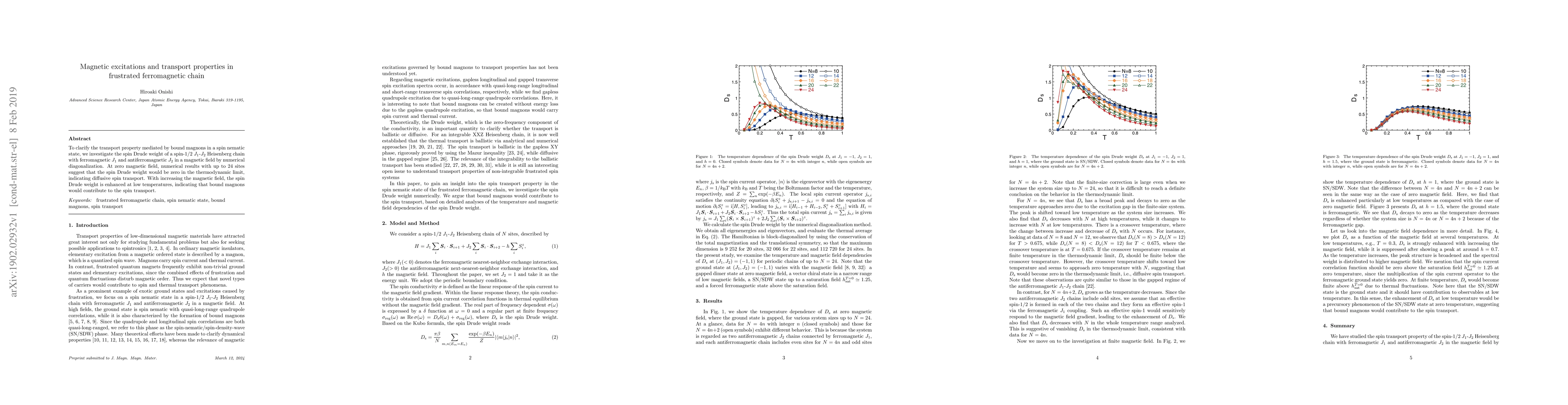 To clarify the transport property mediated by bound magnons in a spin nematic state, we investigate the spin Drude weight of a spin-1/2 $J_{1}$-$J_{2}$ Heisenberg chain with ferromagnetic $J_{1}$ and antiferromagnetic $J_{2}$ in a magnetic field by numerical diagonalization. At zero magnetic field, numerical results with up to 24 sites suggest that the spin Drude weight would be zero in the thermodynamic limit, indicating diffusive spin transport. With increasing the magnetic field, the spin Drude weight is enhanced at low temperatures, indicating that bound magnons would contribute to the spin transport.