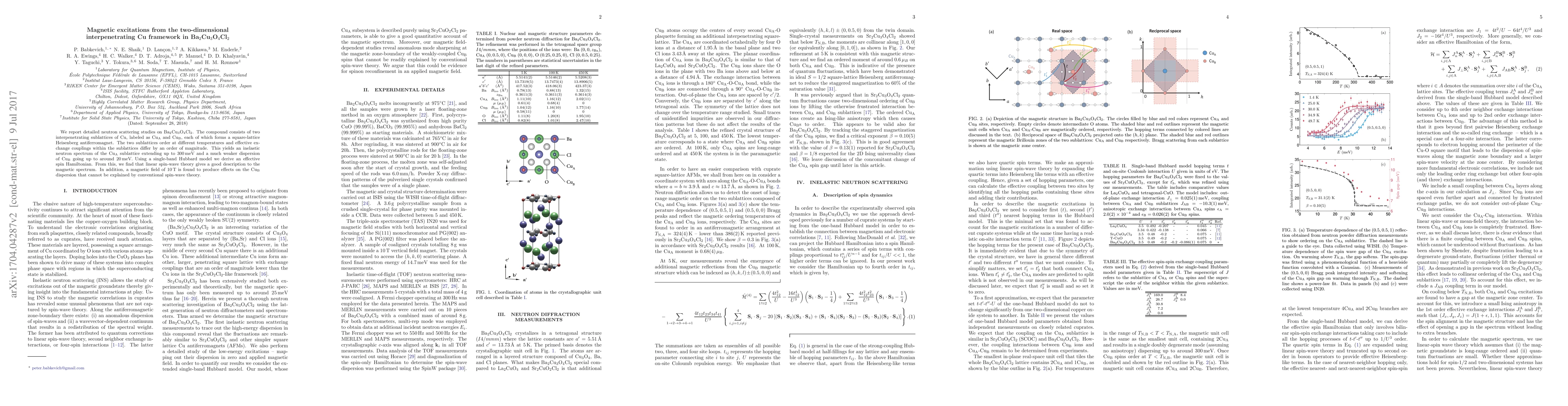 This paper presents neutron scattering studies of Ba$_2$Cu$_3$O$_4$Cl$_2$, revealing distinct magnetic excitations from its two interpenetrating Cu sublattices with differing exchange couplings. Linear spin-wave theory effectively describes the magnetic spectrum but fails to account for the effects of a 10 T magnetic field on the Cu$_{\rm B}$ sublattice.