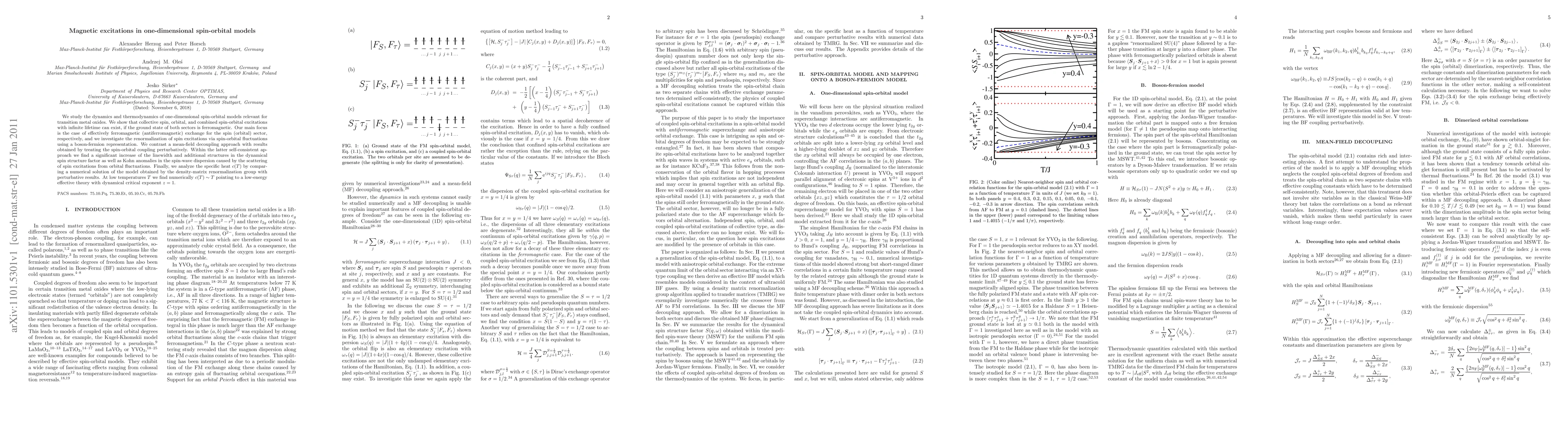 Researchers study magnetic excitations in one-dimensional spin-orbital models, finding collective spin, orbital, and combined excitations with infinite lifetime under certain conditions. They also discover Kohn anomalies and a low-energy effective theory with dynamical critical exponent z=1 at low temperatures.