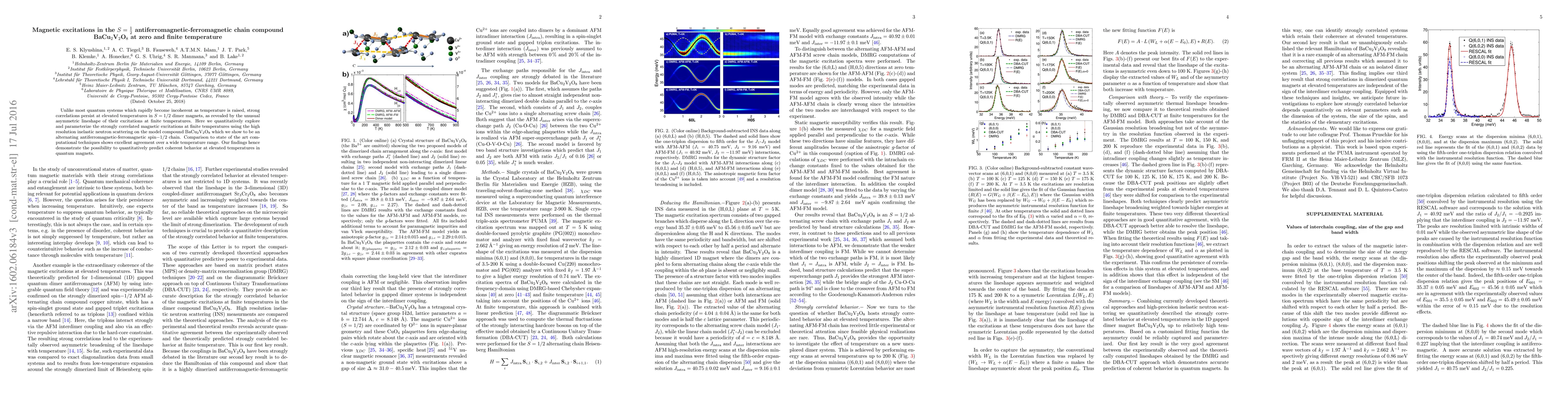 Unlike most quantum systems which rapidly become incoherent as temperature is raised, strong correlations persist at elevated temperatures in $S=1/2$ dimer magnets, as revealed by the unusual asymmetric lineshape of their excitations at finite temperatures. Here we quantitatively explore and parameterize the strongly correlated magnetic excitations at finite temperatures using the high resolution inelastic neutron scattering on the model compound BaCu$_2$V$_2$O$_8$ which we show to be an alternating antiferromagnetic-ferromagnetic spin$-1/2$ chain. Comparison to state of the art computational techniques shows excellent agreement over a wide temperature range. Our findings hence demonstrate the possibility to quantitatively predict coherent behavior at elevated temperatures in quantum magnets.