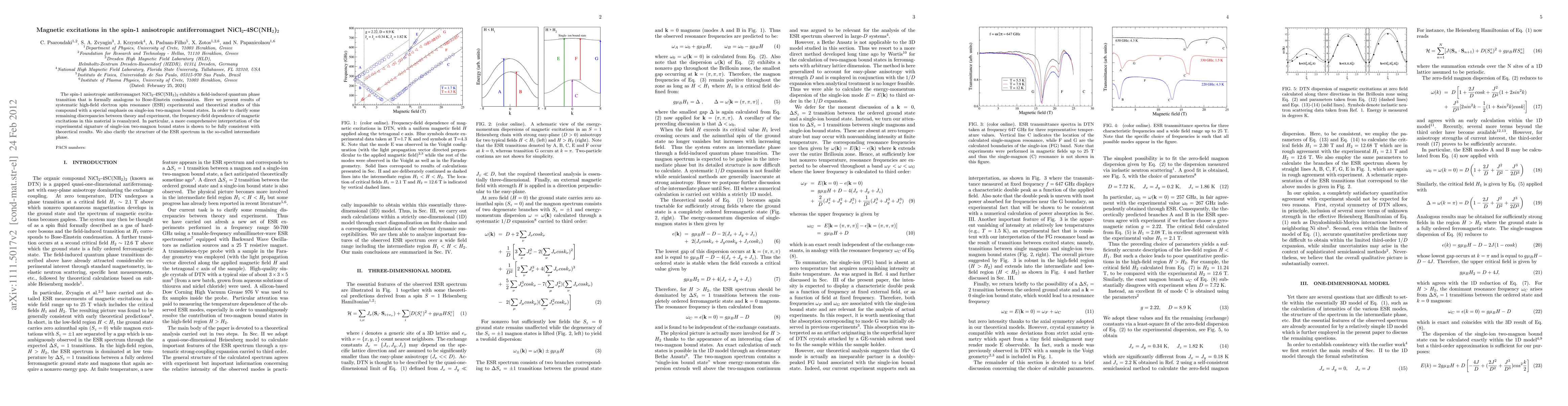 This paper investigates the magnetic excitations in the spin-1 anisotropic antiferromagnet NiCl_2-4SC(NH_2)_2, focusing on its field-induced quantum phase transition and single-ion two-magnon bound states. Through high-field electron spin resonance studies and theoretical analysis, the authors resolve discrepancies between experimental observations and theoretical predictions, providing a clearer understanding of the compound's ESR spectrum in the intermediate phase.