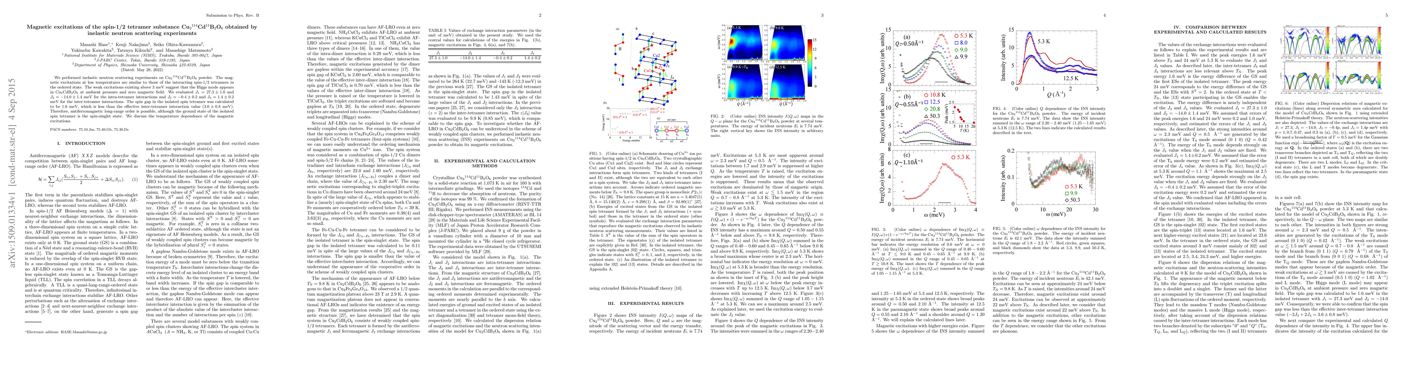 Inelastic neutron scattering experiments on Cu$_2$$^{114}$Cd$^{11}$B$_2$O$_6$ revealed magnetic excitations consistent with interacting spin-1/2 tetramers. Key findings include intra-tetramer interactions J_1 = 27.3 ± 1.0 meV and J_2 = -14.0 ± 1.4 meV, and inter-tetramer interactions J_3 = -0.4 ± 0.2 meV, J_4 = 1.4 ± 0.2 meV. A spin gap of 1.6 meV was calculated for isolated tetramers, indicating possible antiferromagnetic long-range order despite their spin-singlet ground state.