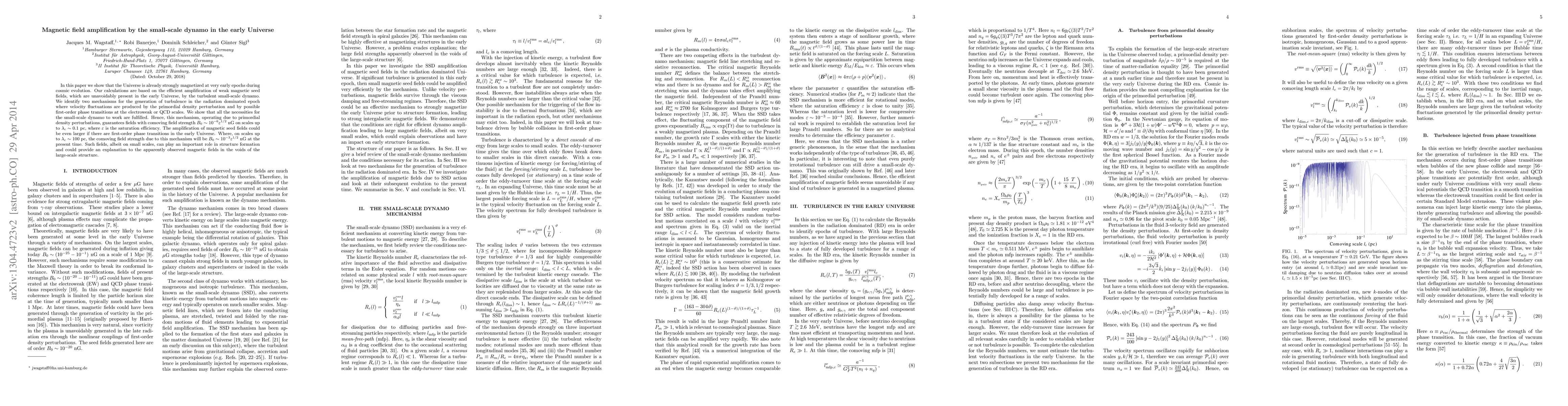 This paper demonstrates that the early Universe was strongly magnetized due to the amplification of weak magnetic seed fields by the small-scale dynamo, driven by turbulence from primordial density perturbations and possible first-order phase transitions. The small-scale dynamo mechanism can generate magnetic fields with strengths up to $B_0\sim10^{-6}\varepsilon^{1/2}$ nG on scales up to 0.1 pc, potentially increasing to $B_0\sim10^{-3}\varepsilon^{1/2}$ nG on scales up to 100 pc.