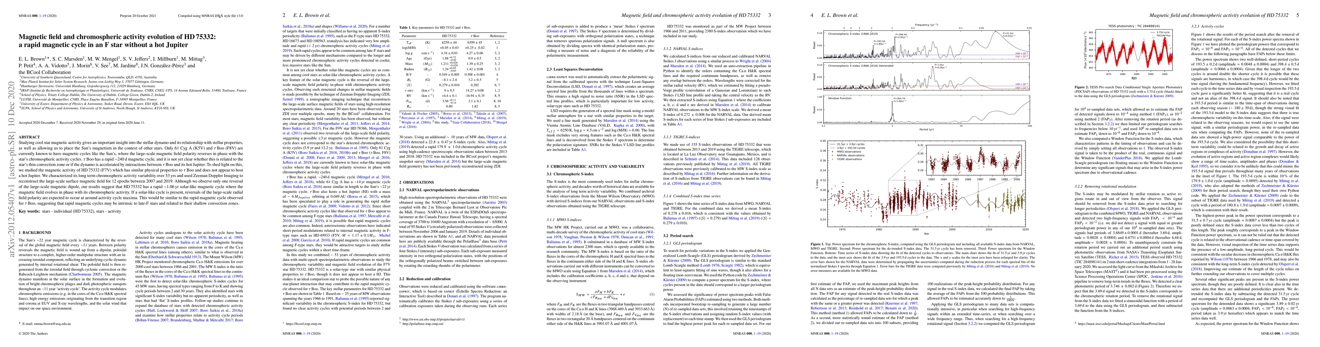 This study investigates the magnetic field and chromospheric activity of HD75332, an F star similar to τ Boo but without a hot Jupiter, revealing a rapid 1.06-year solar-like magnetic cycle. The findings suggest that rapid magnetic cycles may be intrinsic to late-F stars due to their shallow convection zones.