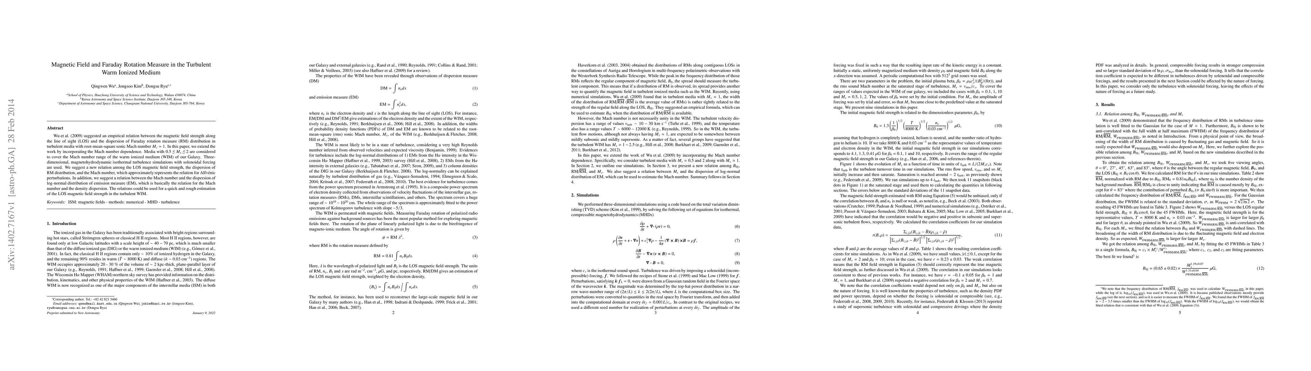 This paper extends an empirical relation between magnetic field strength and Faraday rotation measure dispersion in turbulent warm ionized medium, incorporating Mach number dependence. It proposes new relations for Alfv\'enic perturbations and the dispersion of emission measure, useful for estimating the line-of-sight magnetic field strength in the Galactic warm ionized medium.