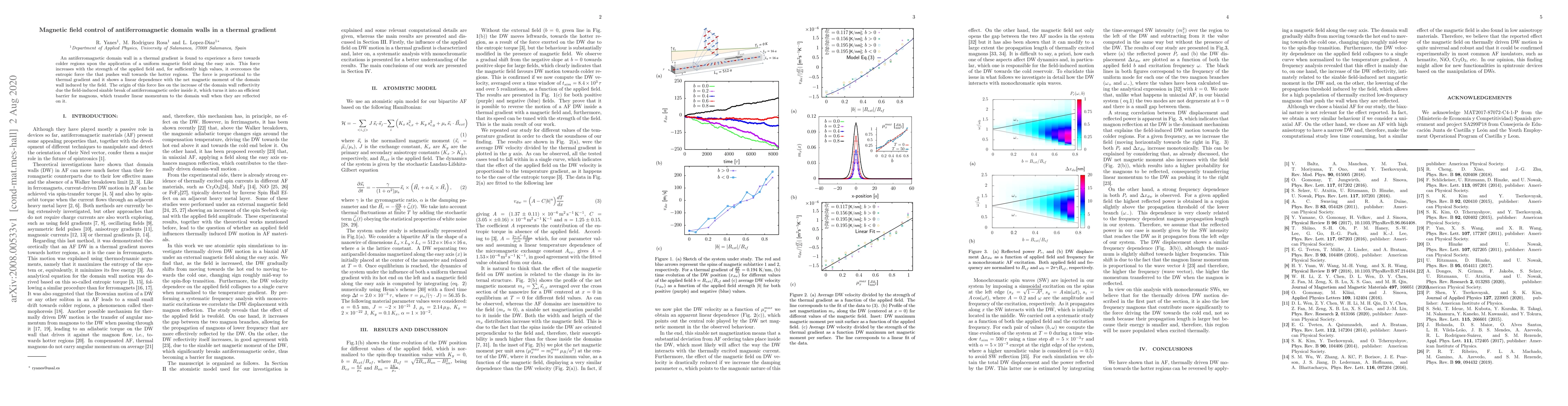 An antiferromagnetic domain wall in a thermal gradient is found to experience a force towards colder regions upon the application of a uniform magnetic field along the easy axis. This force increases with the strength of the applied field and, for sufficiently high values, it overcomes the entropic force the that pushes wall towards the hotter regions. The force is proportional to the thermal gradient and it shows a linear dependence with the net magnetic moment of the domain wall induced by the field. The origin of this force lies on the increase of the domain wall reflectivity due the field-induced sizable break of antiferromagnetic order inside it, which turns it into an efficient barrier for magnons, which transfer linear momentum to the domain wall when they are reflected on it