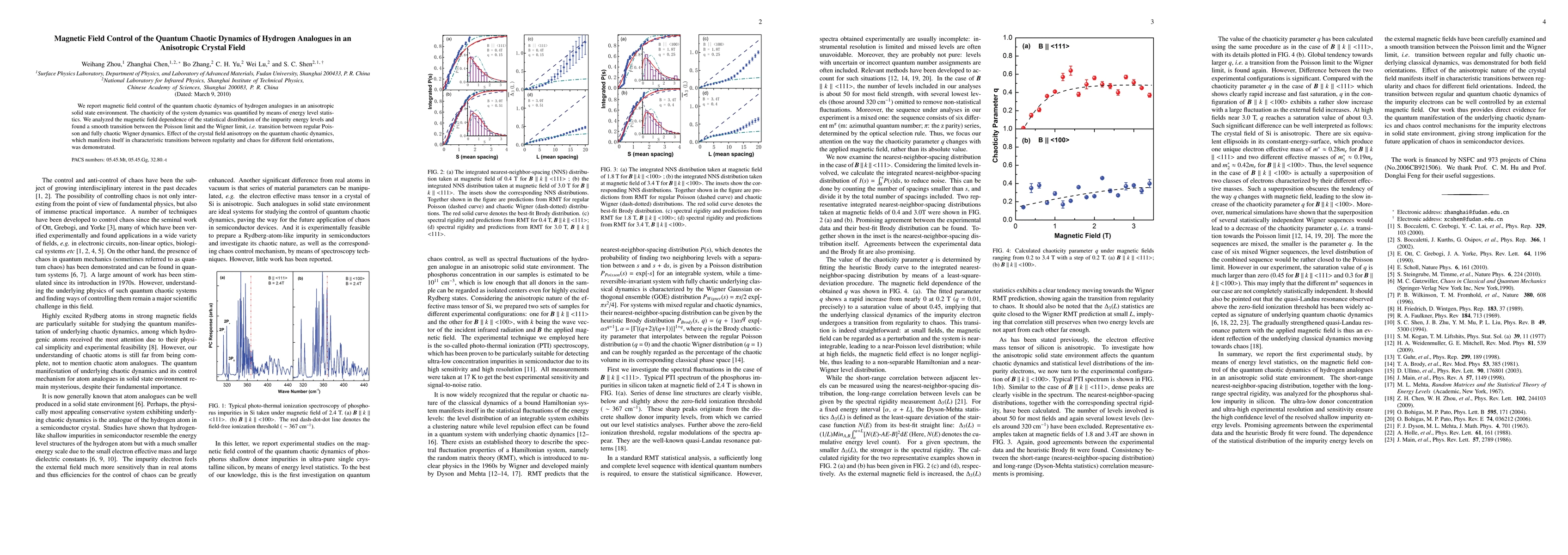 We report magnetic field control of the quantum chaotic dynamics of hydrogen analogues in an anisotropic solid state environment. The chaoticity of the system dynamics was quantified by means of energy level statistics. We analyzed the magnetic field dependence of the statistical distribution of the impurity energy levels and found a smooth transition between the Poisson limit and the Wigner limit, i.e. transition between regular Poisson and fully chaotic Wigner dynamics. Effect of the crystal field anisotropy on the quantum chaotic dynamics, which manifests itself in characteristic transitions between regularity and chaos for different field orientations, was demonstrated.