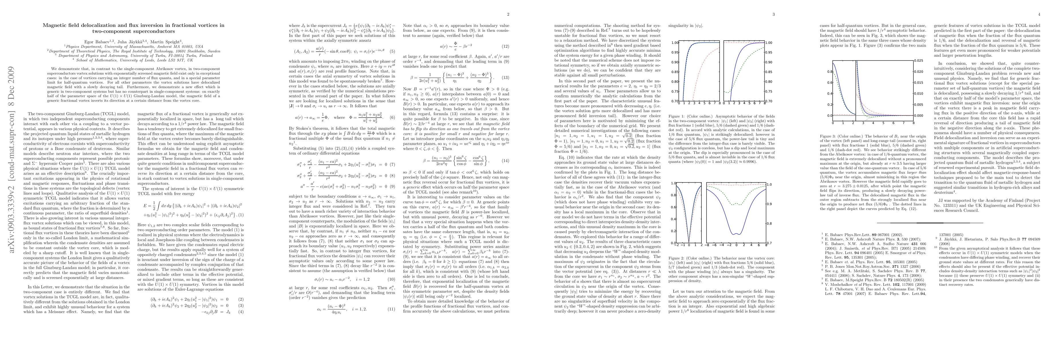 This paper shows that in two-component superconductors, vortex solutions typically exhibit delocalized magnetic fields with decaying tails, unlike single-component superconductors. It also reveals a unique phenomenon where the magnetic field of fractional vortices inverts direction in half of the parameter space of the $U(1)\times U(1)$ Ginzburg-Landau model.