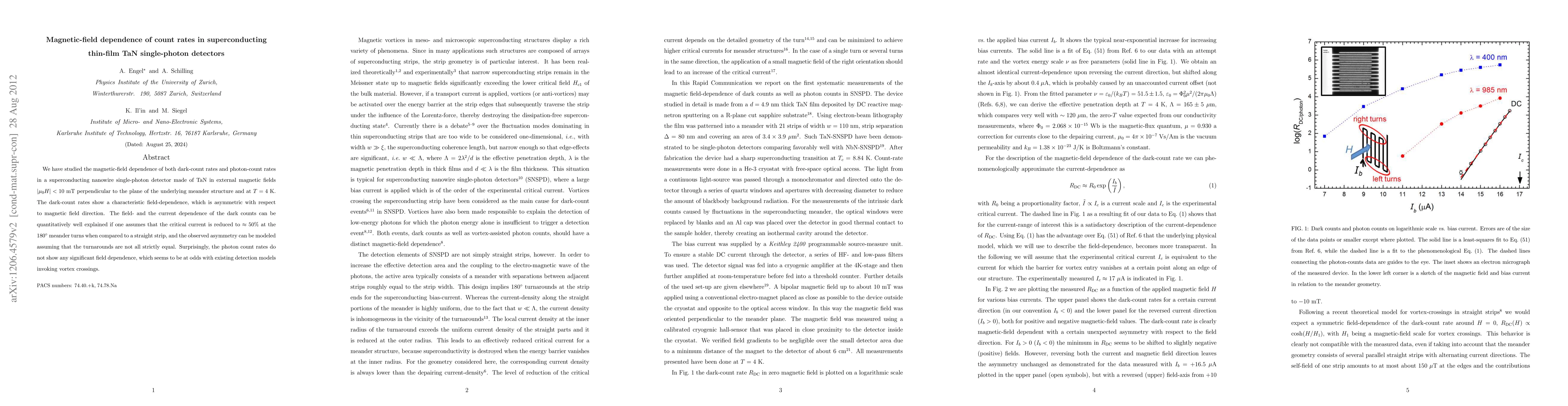 This study investigates the magnetic-field dependence of dark-count and photon-count rates in TaN superconducting nanowire single-photon detectors, revealing an asymmetric dark-count rate behavior with field direction. Surprisingly, photon-count rates remain largely unaffected by the magnetic field, challenging existing vortex-based detection models.