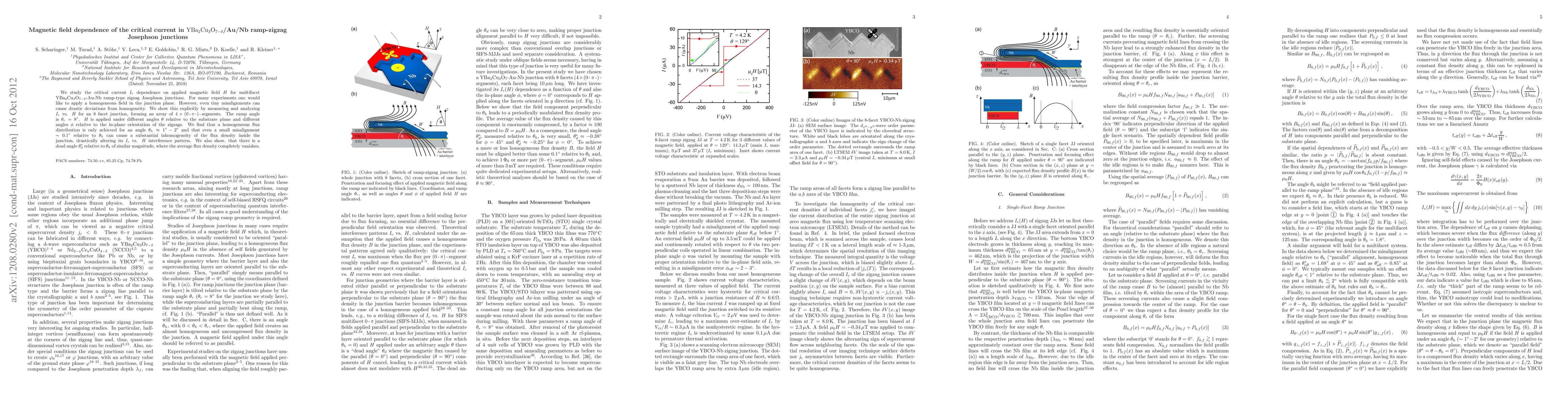 The study explores how magnetic fields affect critical current in YBa2Cu3O7-ψ/Au/Nb Josephson junctions with tiny misalignments, showing that even small deviations can drastically alter the interference pattern of I_c vs. H and create a 'dead angle' where flux density vanishes.