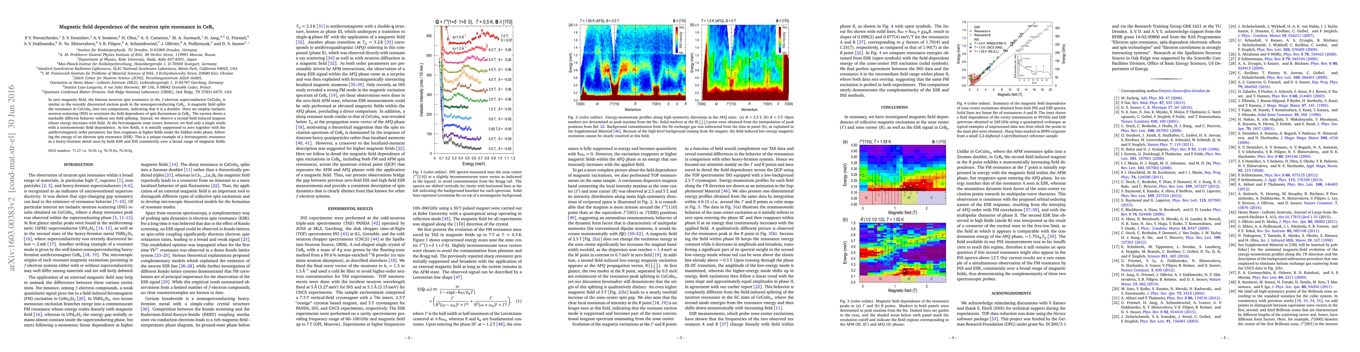 This study investigates the magnetic field dependence of neutron spin resonance in CeB6 using inelastic neutron scattering, revealing a second field-induced magnon whose energy increases with field. Unlike CeCoIn5, the exciton peak in CeB6 does not split under magnetic fields, but instead shows a unique ferromagnetic resonance mode that reappears in the hidden-order phase.